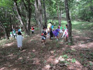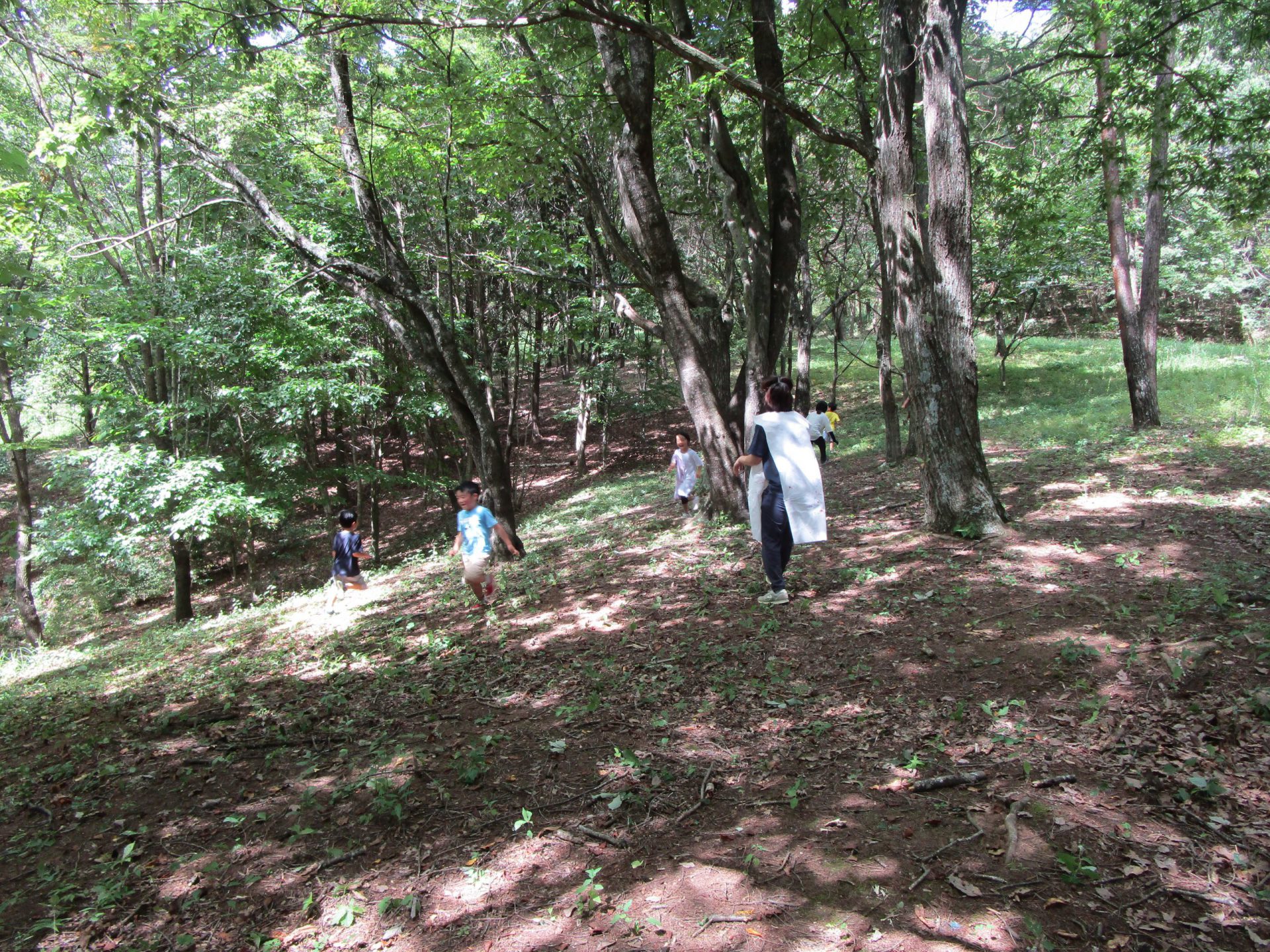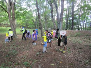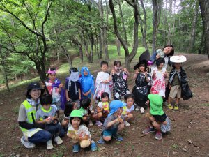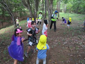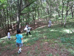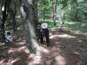 「先に裏山に行って隠れなきゃっ」と子どもたち。準備をします。ドキドキ。