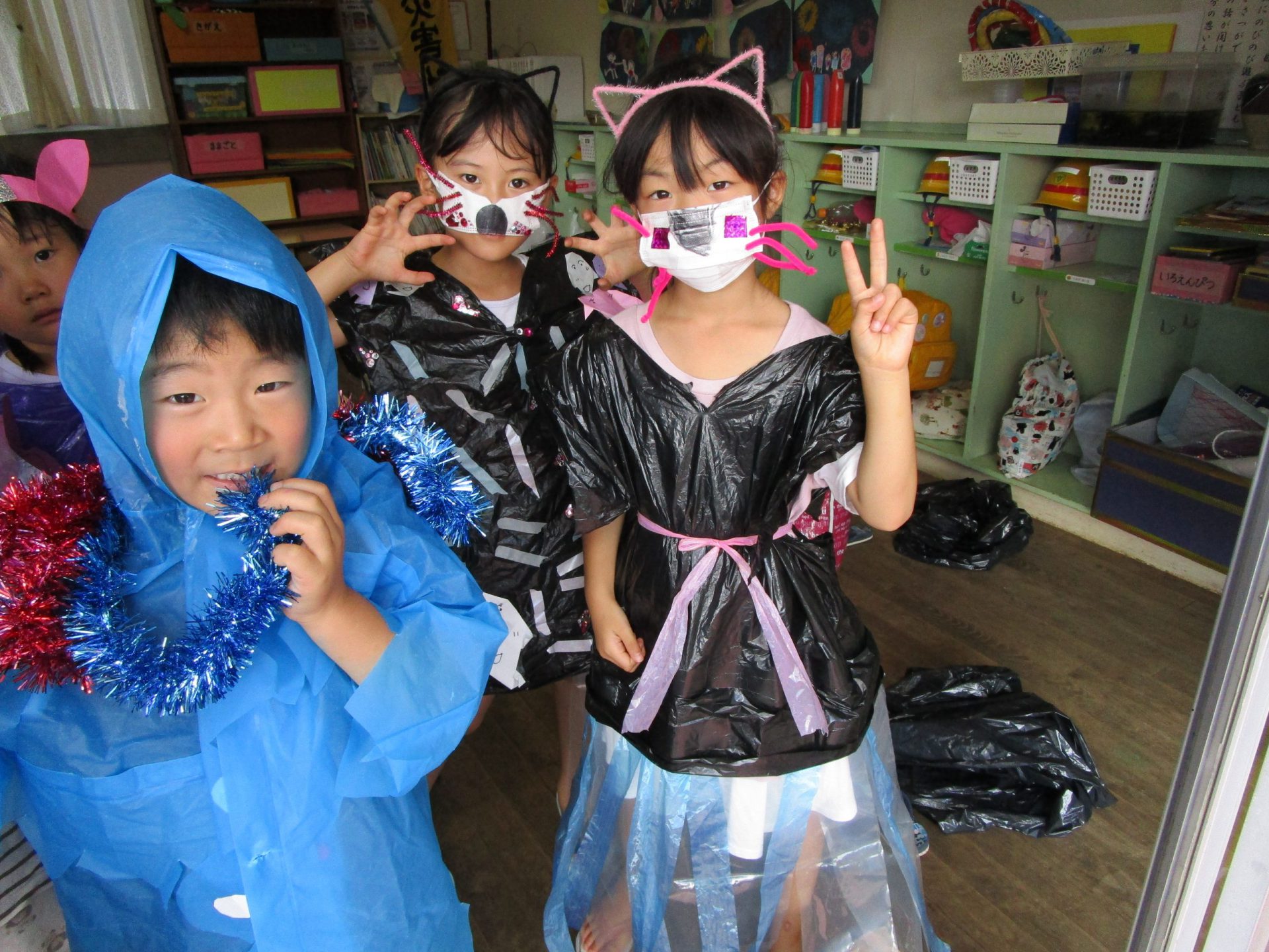 おばけ役は年長のゆり組さん。お家や保育園でおばけの衣装をイメージしながら作りました。かわいいものからこわ~いものまで!