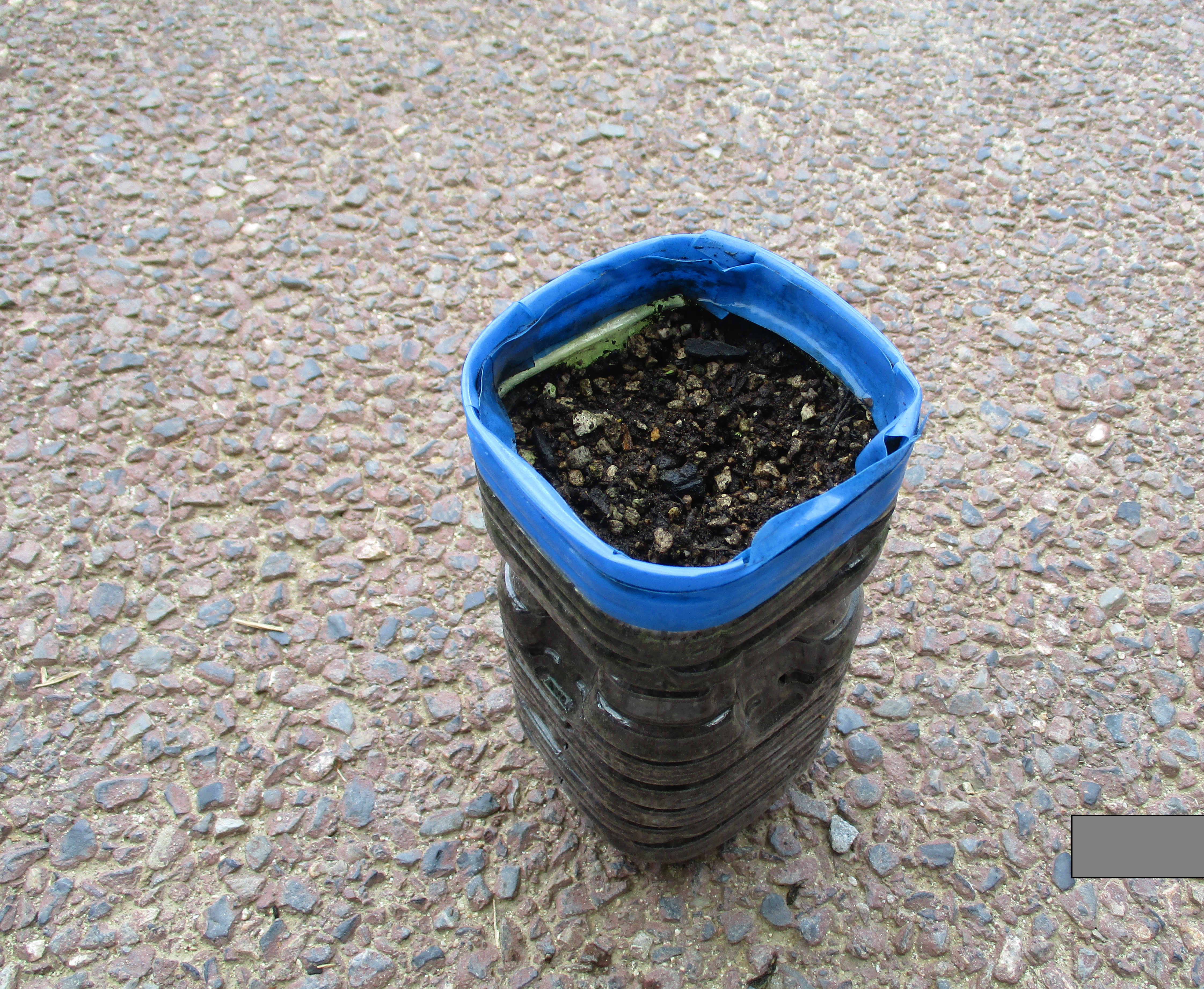 6月の参観日に親子それぞれのペットボトル畑を作って、人参の種を8粒ずつまきました。
