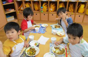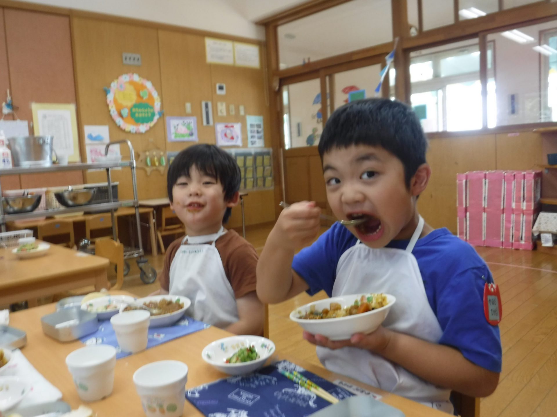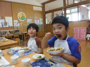 給食の先生にお願いして、カレーに入れてもらいました。 (8月)
