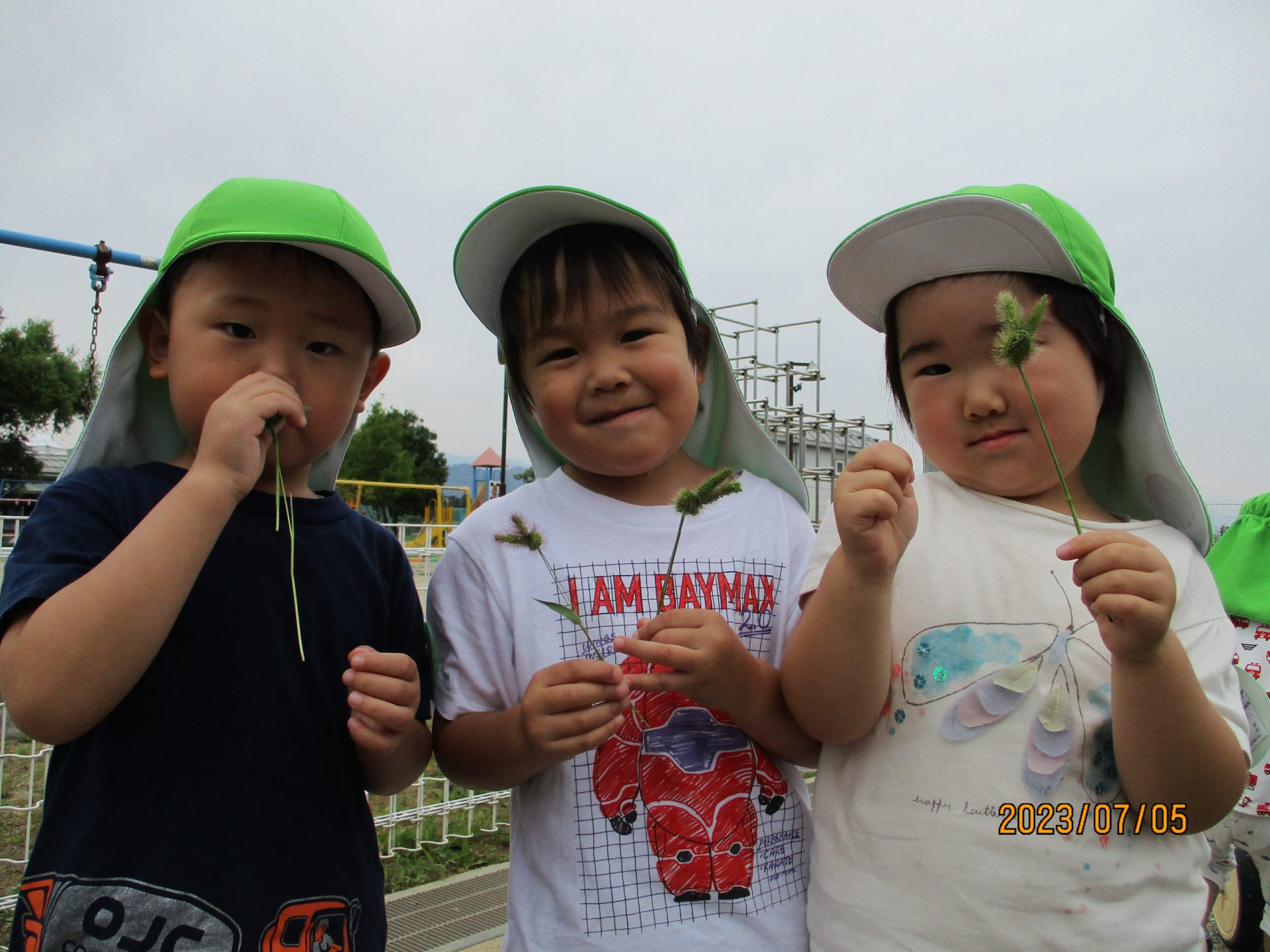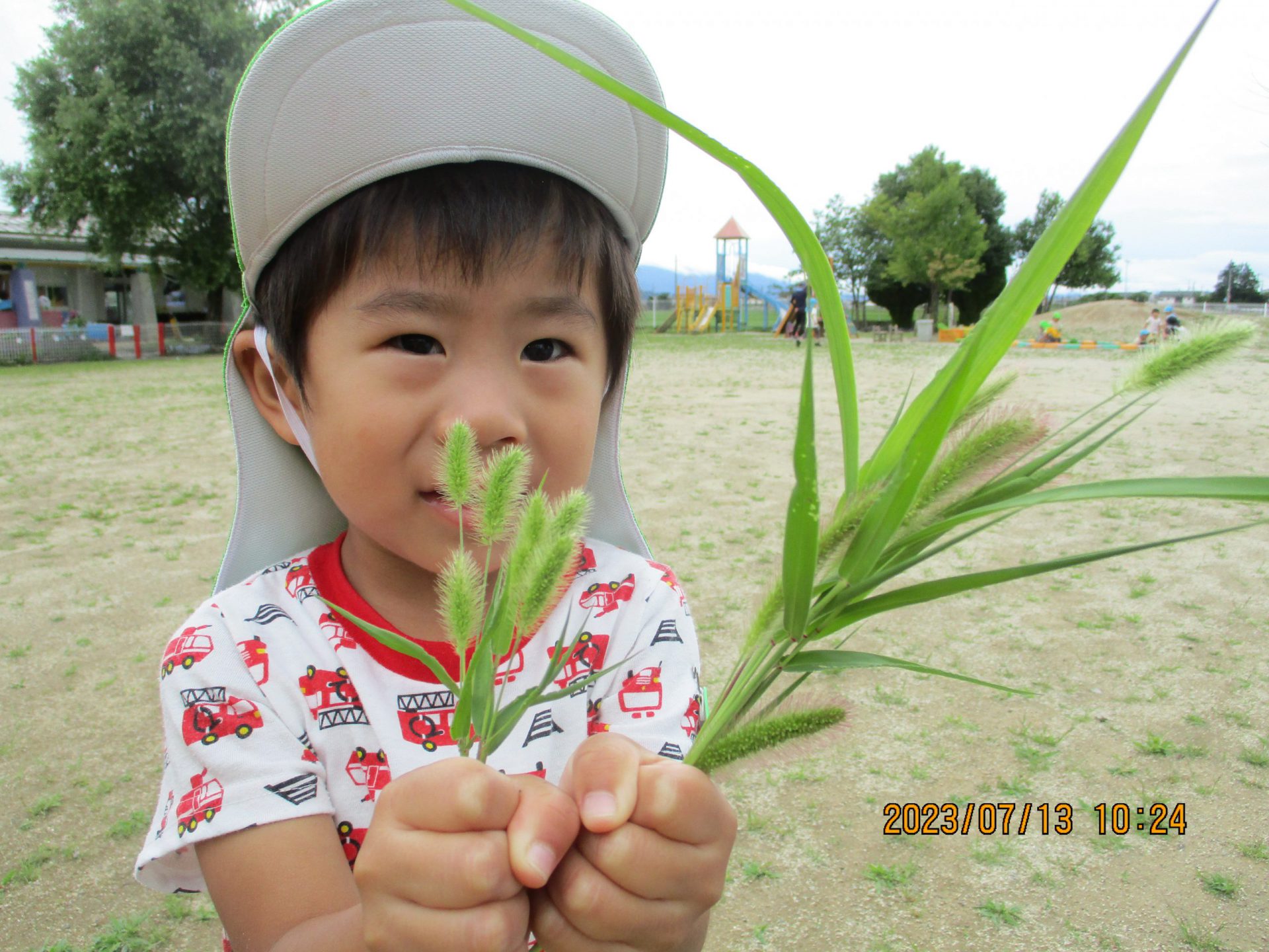 「先生見てー!いいもの発見!」 沢山の猫じゃらしを見つけました。