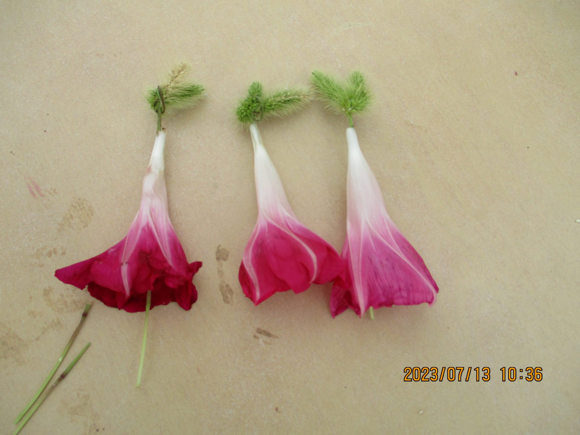 「2つくっつけるとウサギみたい。朝顔のドレスも着せてみよう」