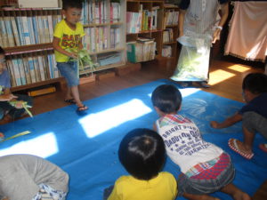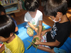 再び年長さんが3歳、4歳さんにやさしく教えてくれました。