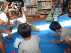 皮むきの後は自分たちでキレイに掃除します。年長さんは自分たちでほうきとちりとりを持ってきて、テキパキと掃除してくれました。
