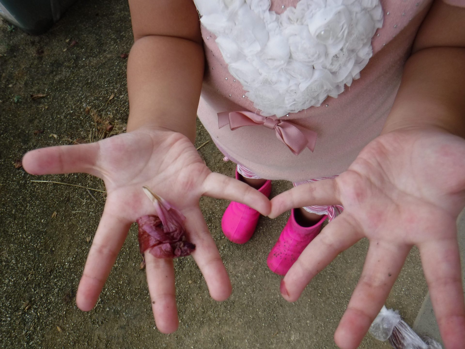 枯れて落ちた花と、咲いている花では色が違うことを発見しました。