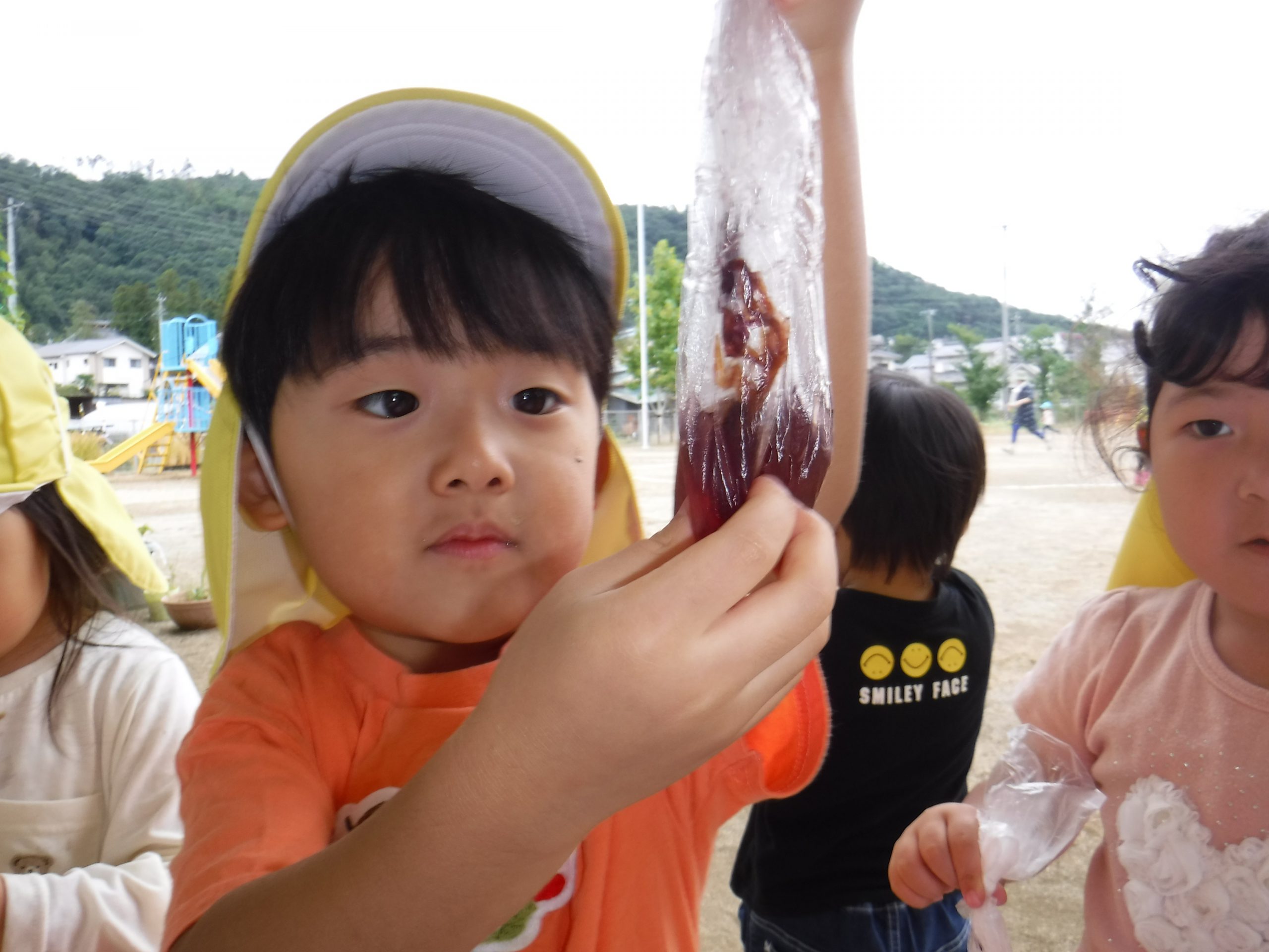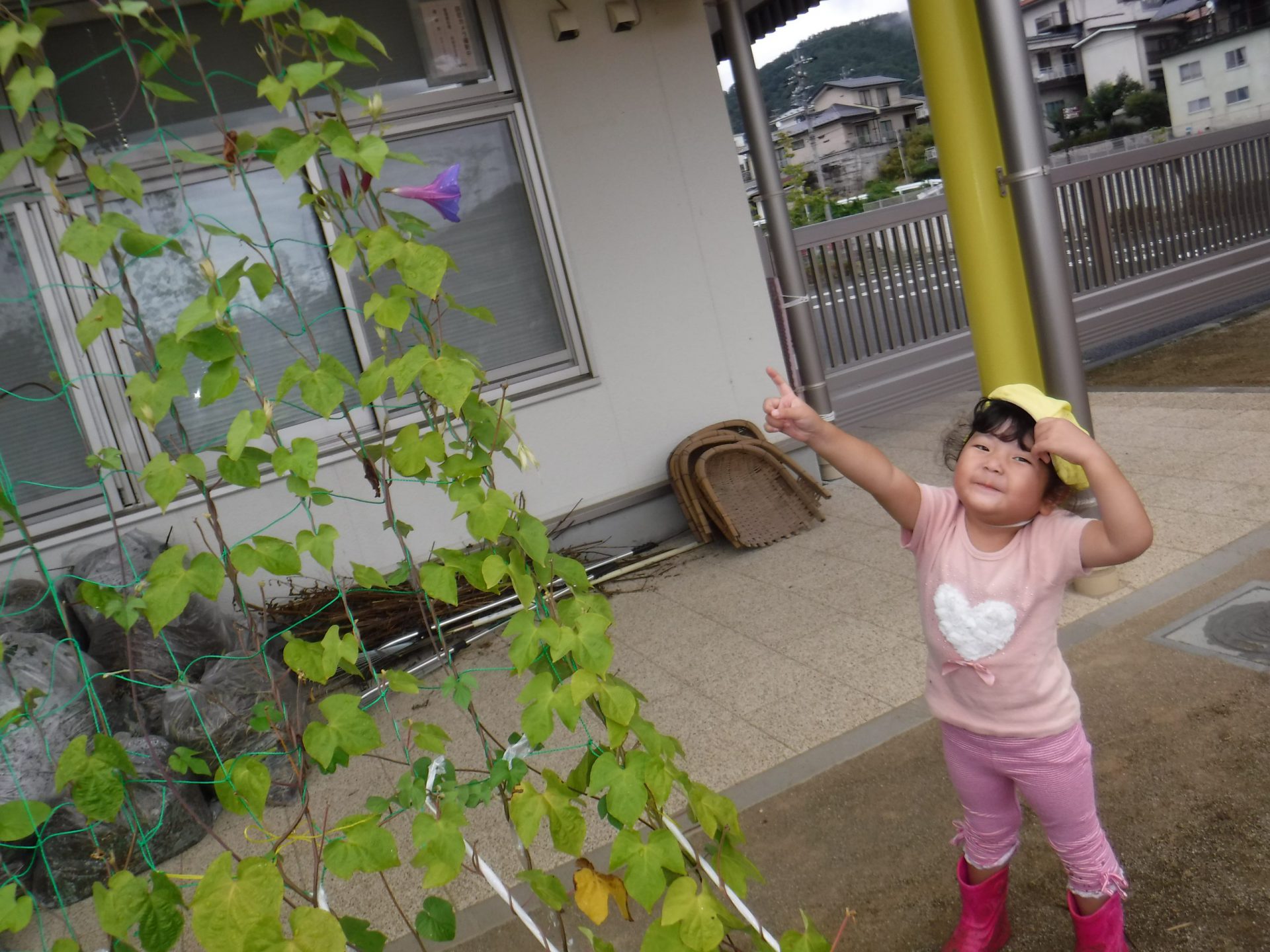雨がやんでやっと外に出ることができ、園庭を探索していると・・・