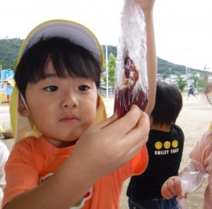 「みてみて」 色がついたことが嬉しくてみんなに見せています。