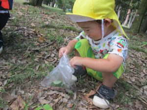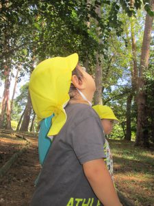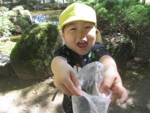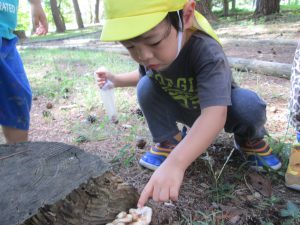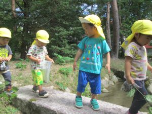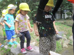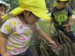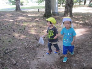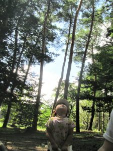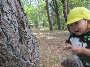 自然の中で、暑さ・涼しさを肌で感じたり、青い空や木の高さに気づいたりして、視野を広げ、発見を楽しんでほしいです。