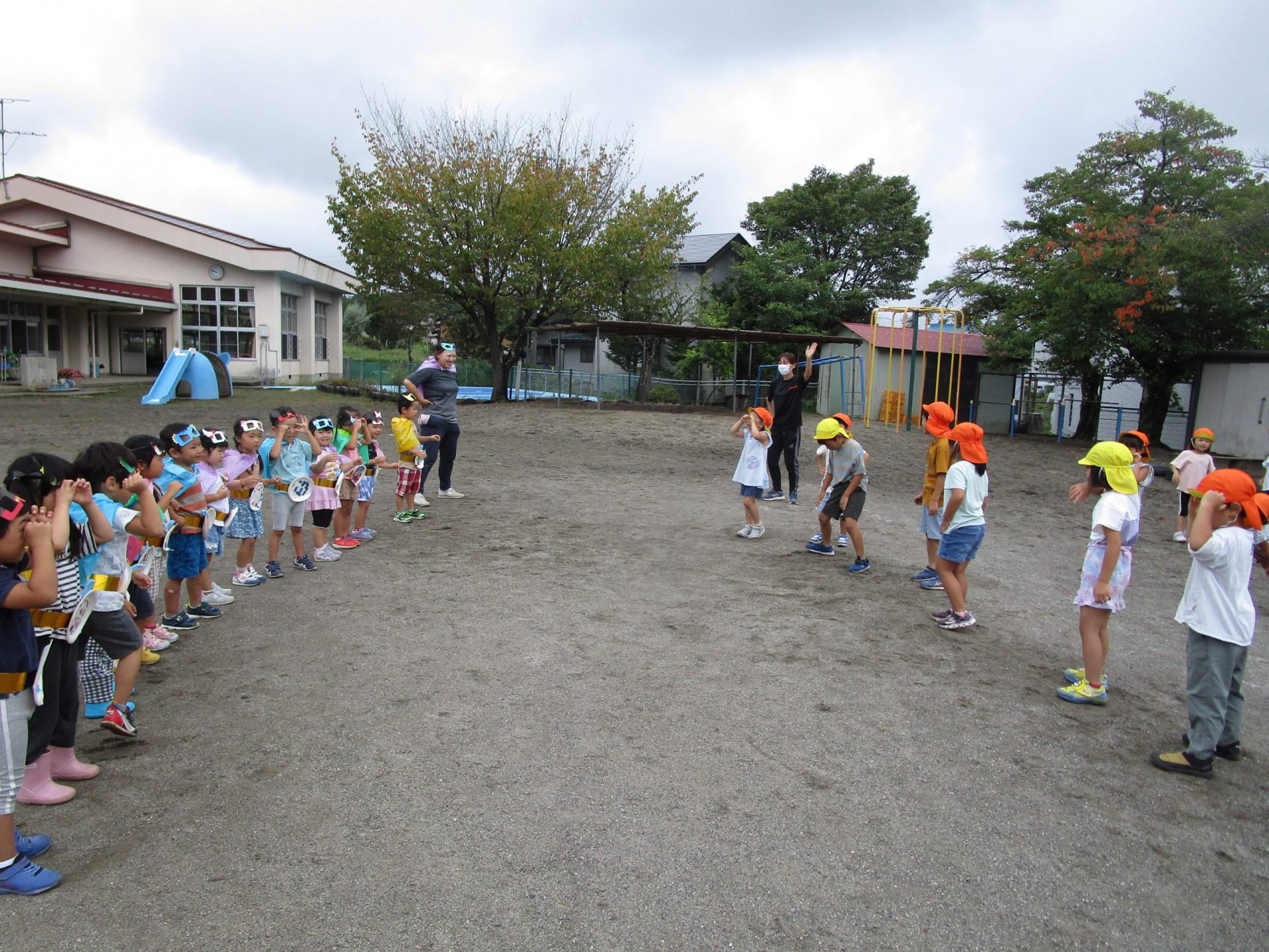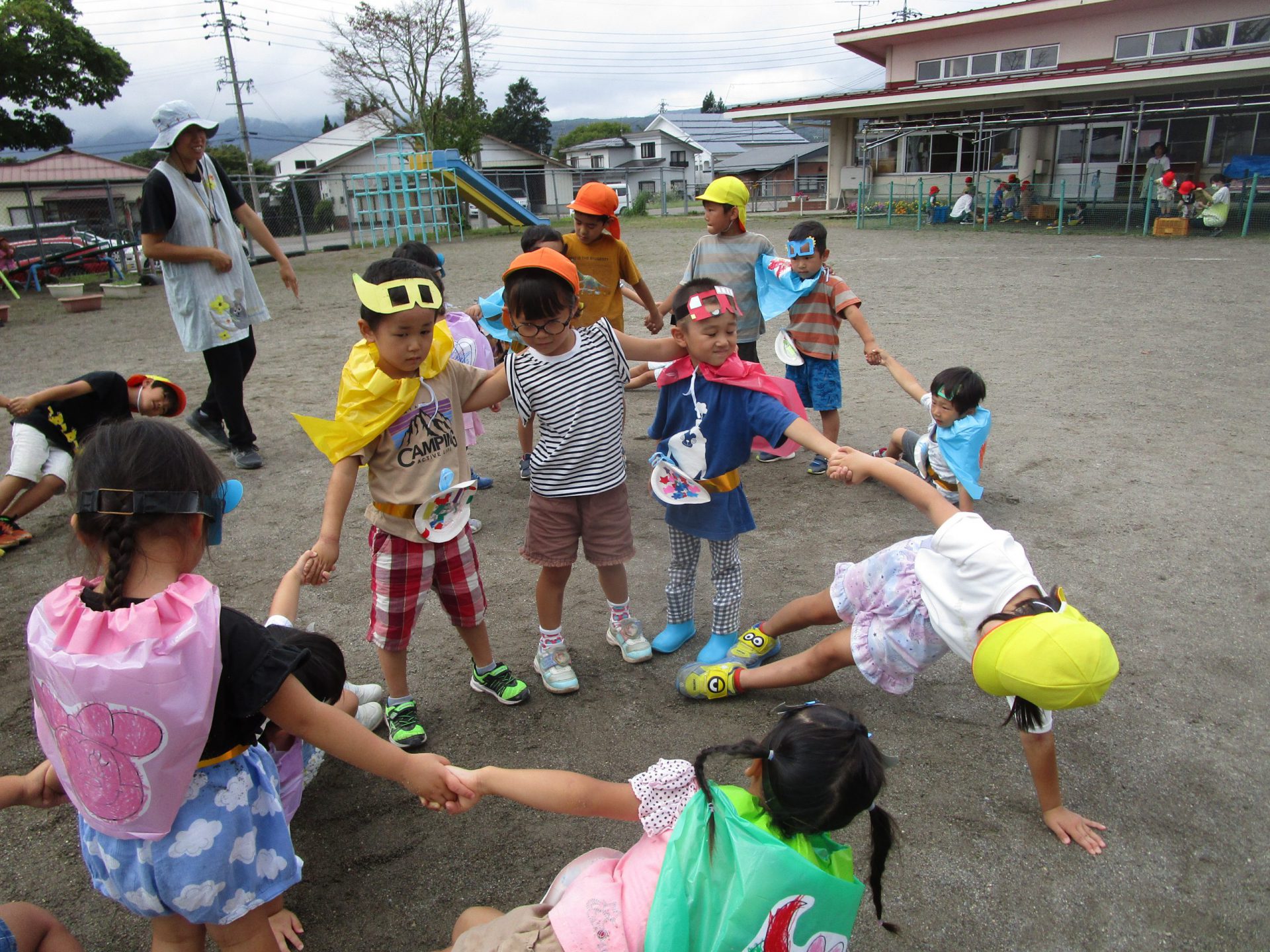 園庭に曲が流れると一斉に真ん中に集まり踊り始める子ども達。