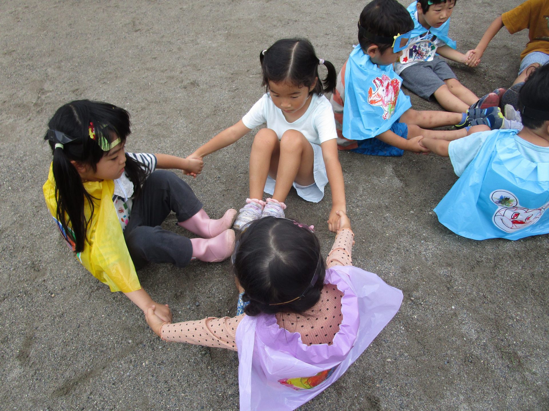 やり方が分からず戸惑う子もいましたが、年長の子たちに教えてもらいながら集中して取り組む子ども達。