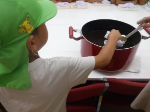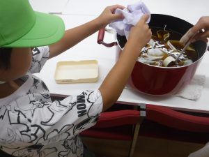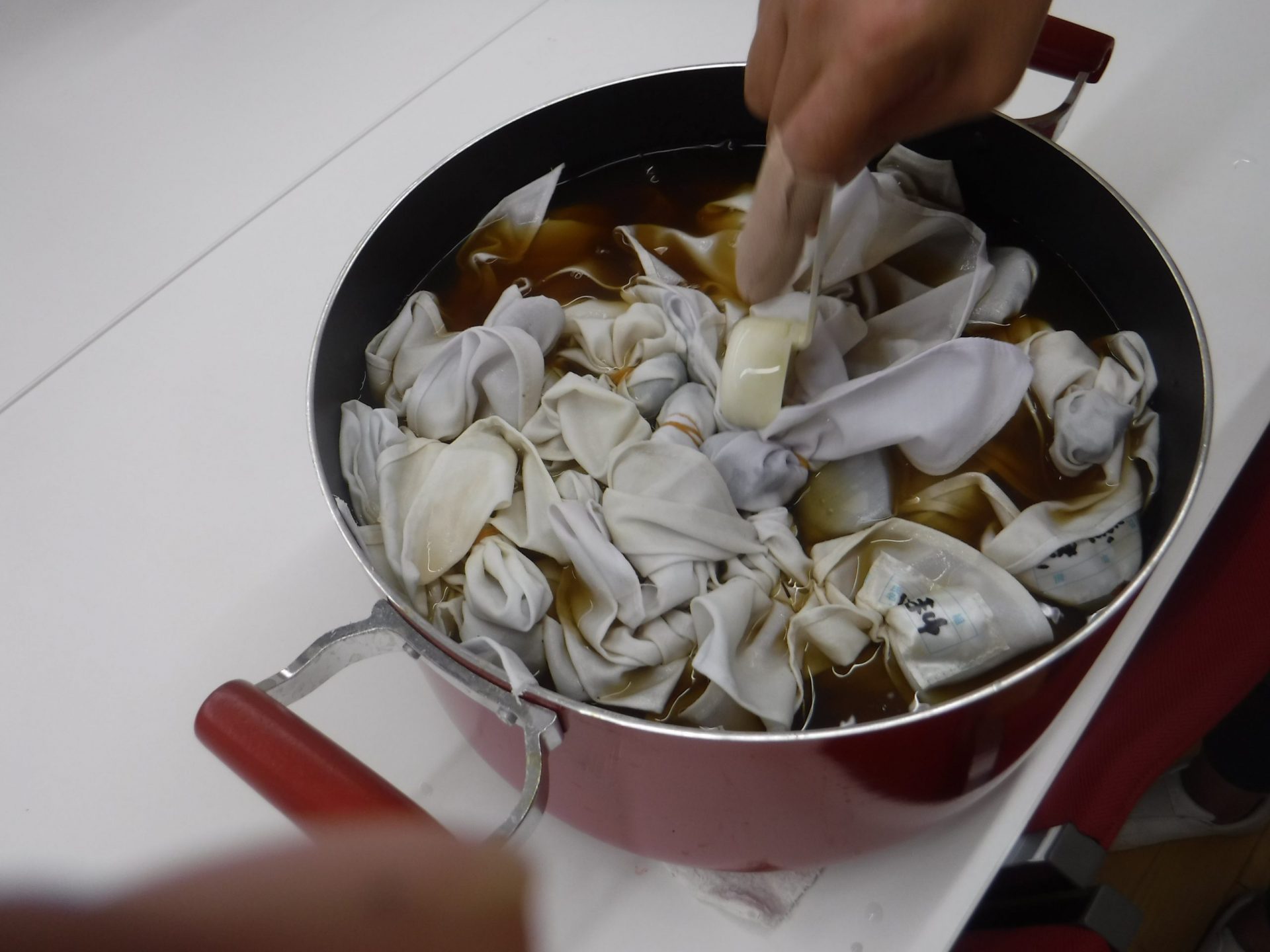 自分の三角巾をお鍋に入れていきます。