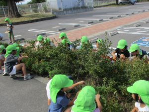 たくさん集めるために、みんなで園の駐車場にも取りに出かけました。