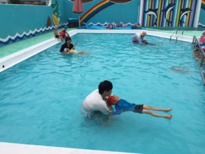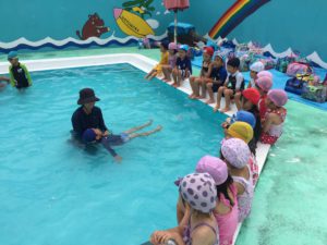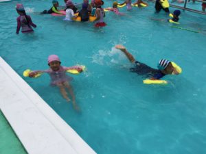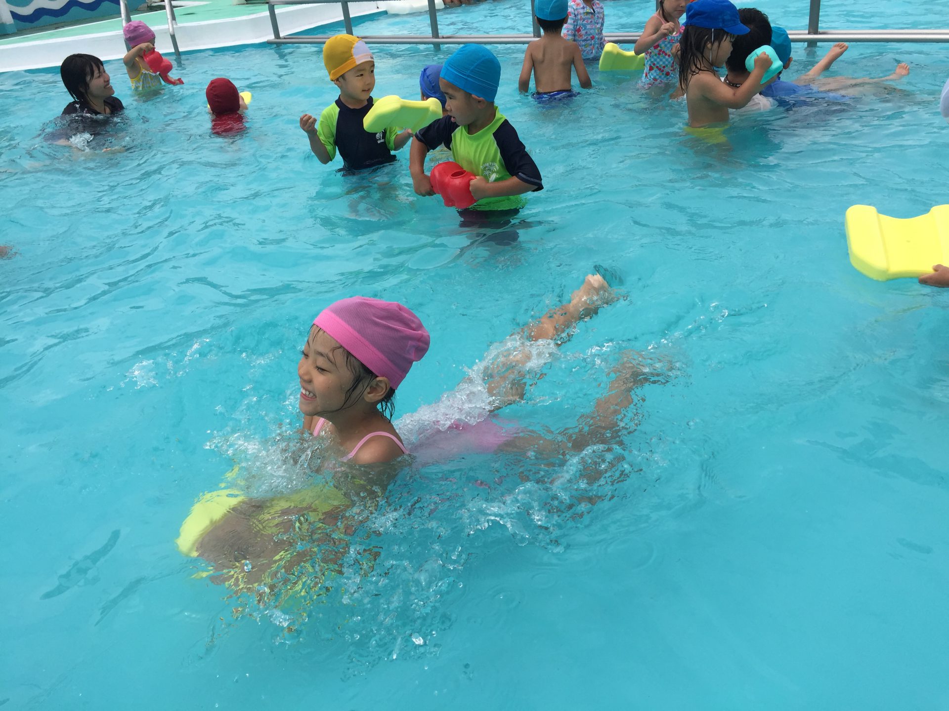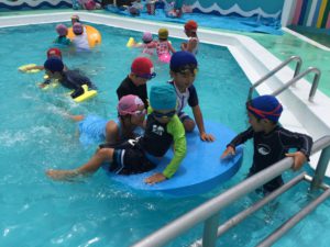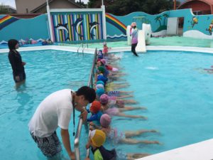 怖がることなく完全に一人で浮ける子と、一人ひとりが少しずつ挑戦をしながら頑張っています。