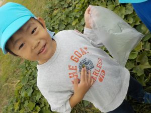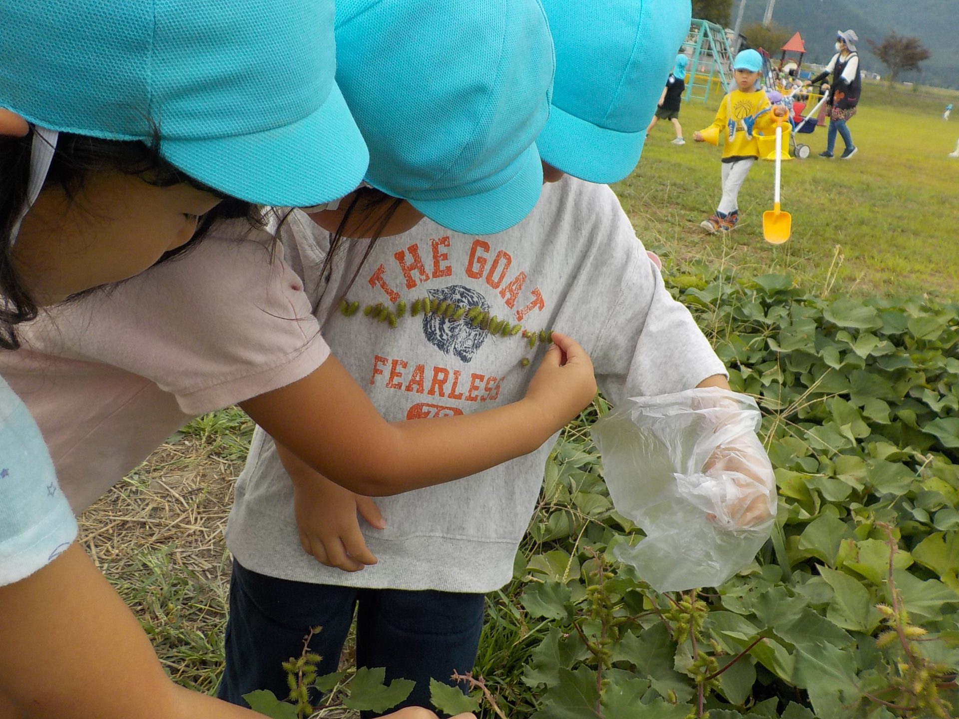 ・さつまいも畑の端にくっつく植物を見つけた子どもたち。