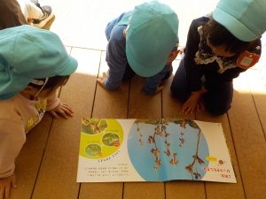 「おまもり?」「おもなみ?」「ちがうよ!『お・な・も・み』だよ!!」と名前を一生懸命覚える子どもたち。