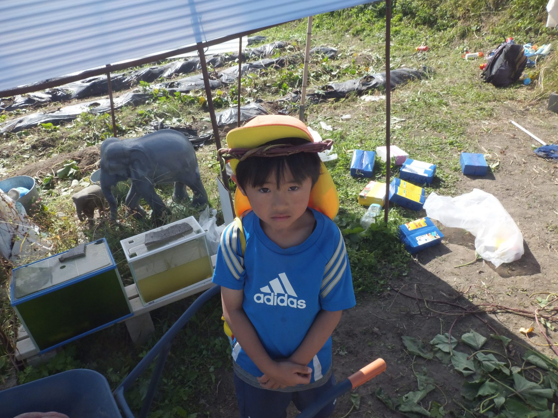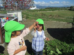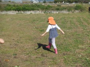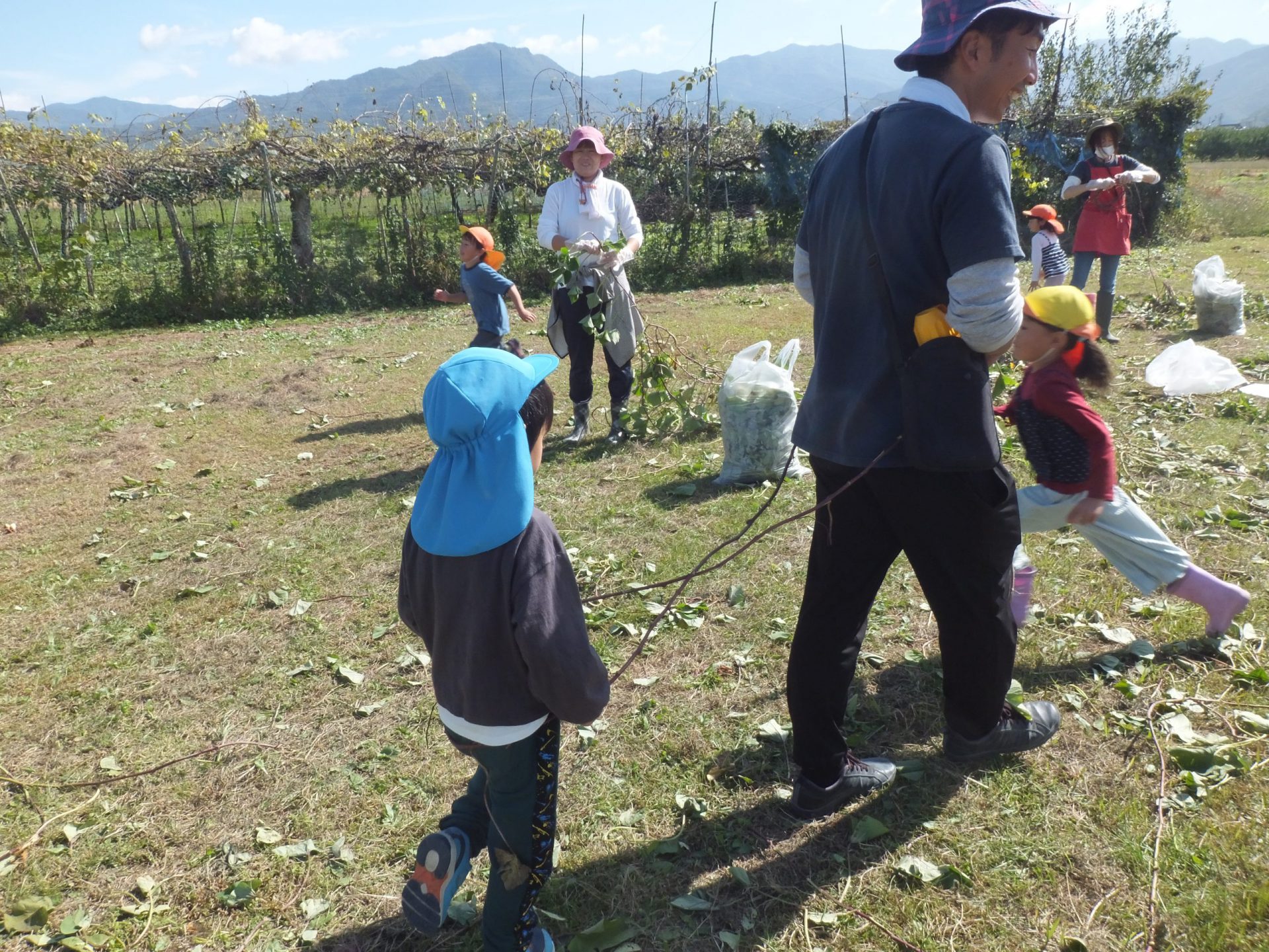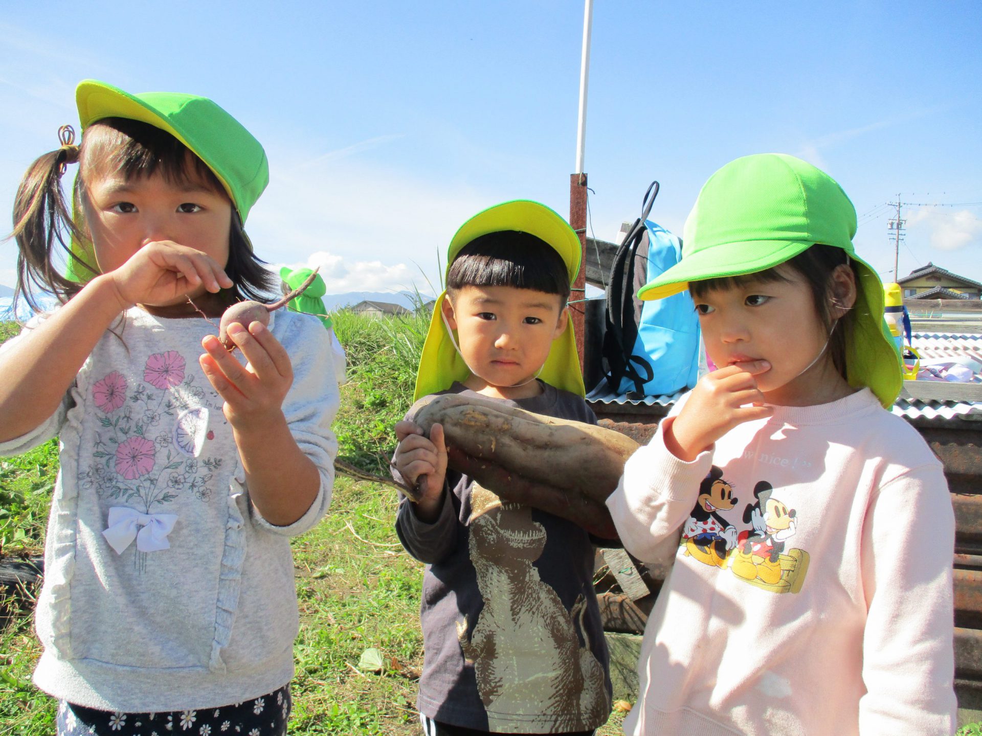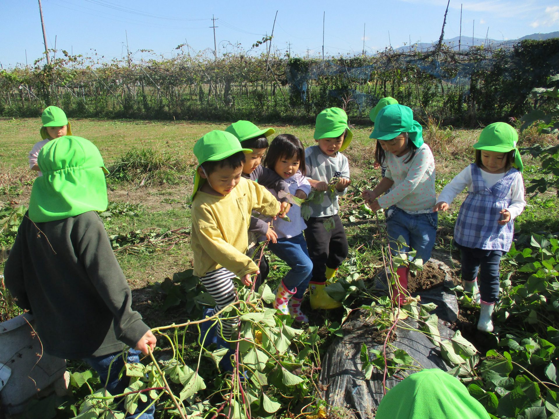 キラキラ太陽の下で、一生懸命さつまいものつる取りをしたり遊んだりして、汗ぐっしょりになるまで遊びました。