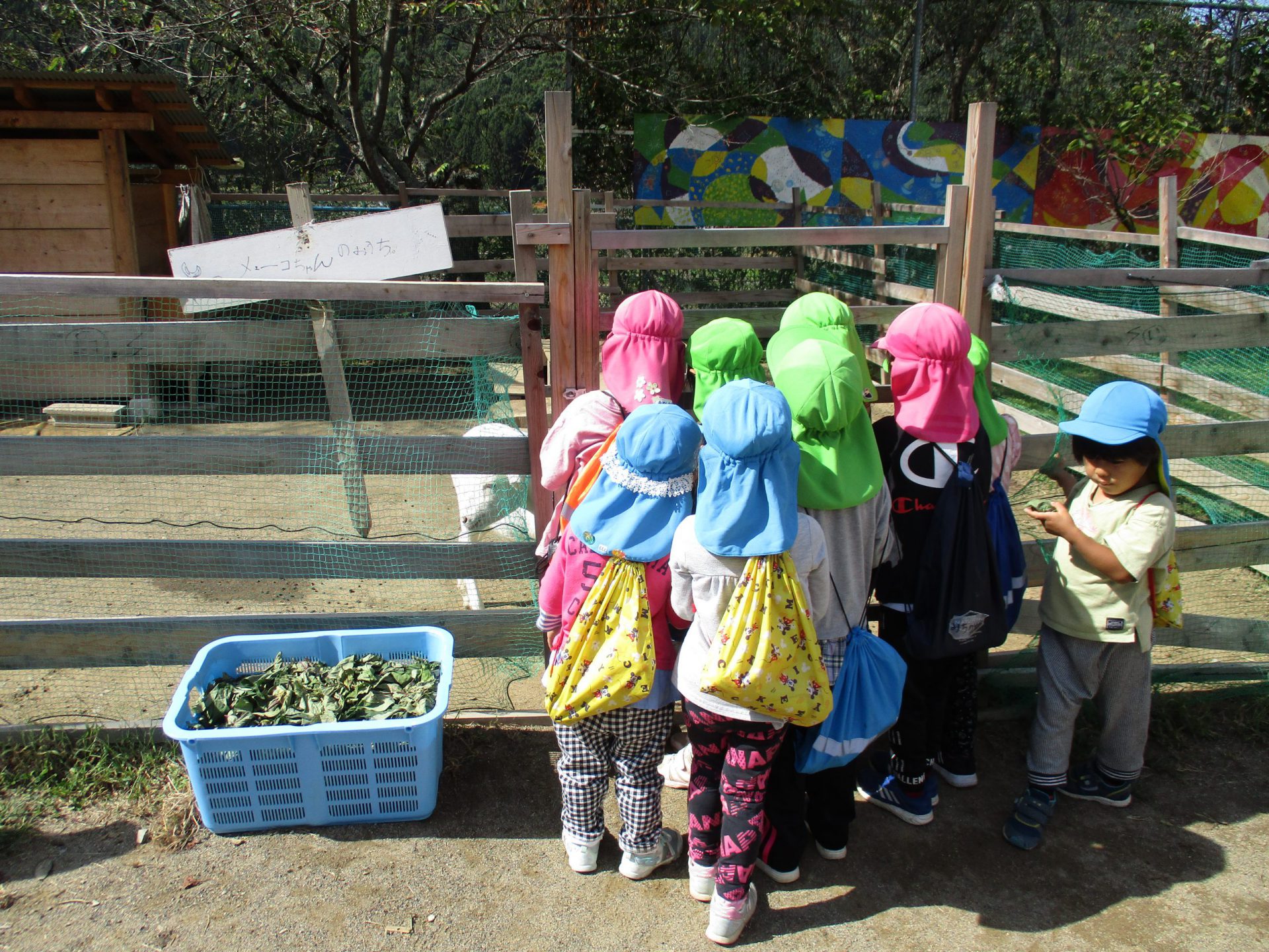 そしてその時に取った葉っぱを、お隣の小学校にいるヤギのめーこちゃんにプレゼントしたのでした。