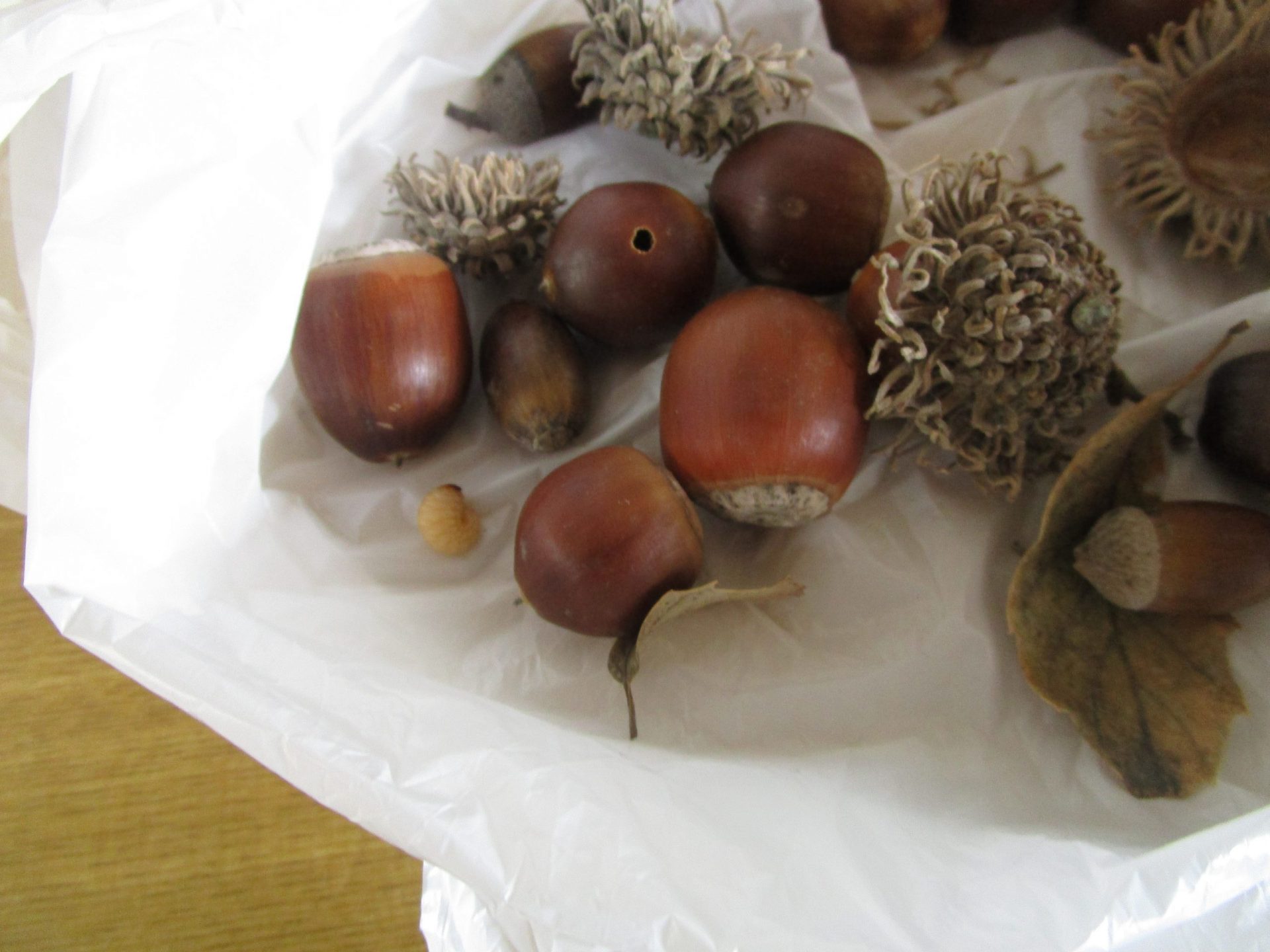 「どんぐりの中から虫が出てくるって知ってる?」と数日どんぐりをケースに入れておくと、