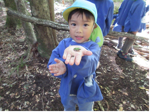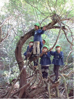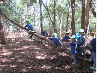 ・森の中の自然物を使い、友だちと相談したり協力したりして遊びをどんどん広げ、深めて楽しさをたくさん味わってほしいと思います。