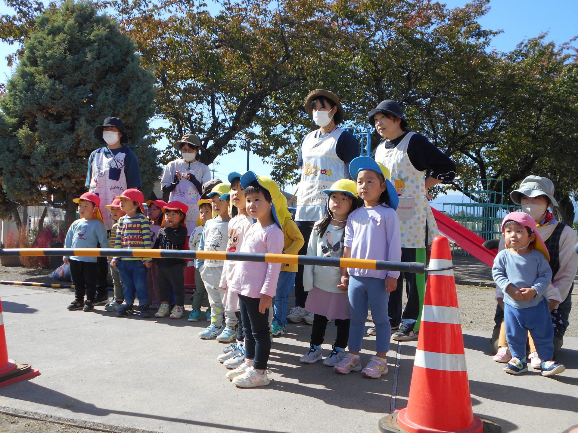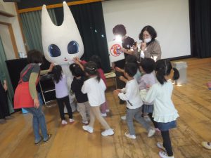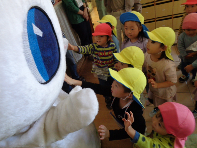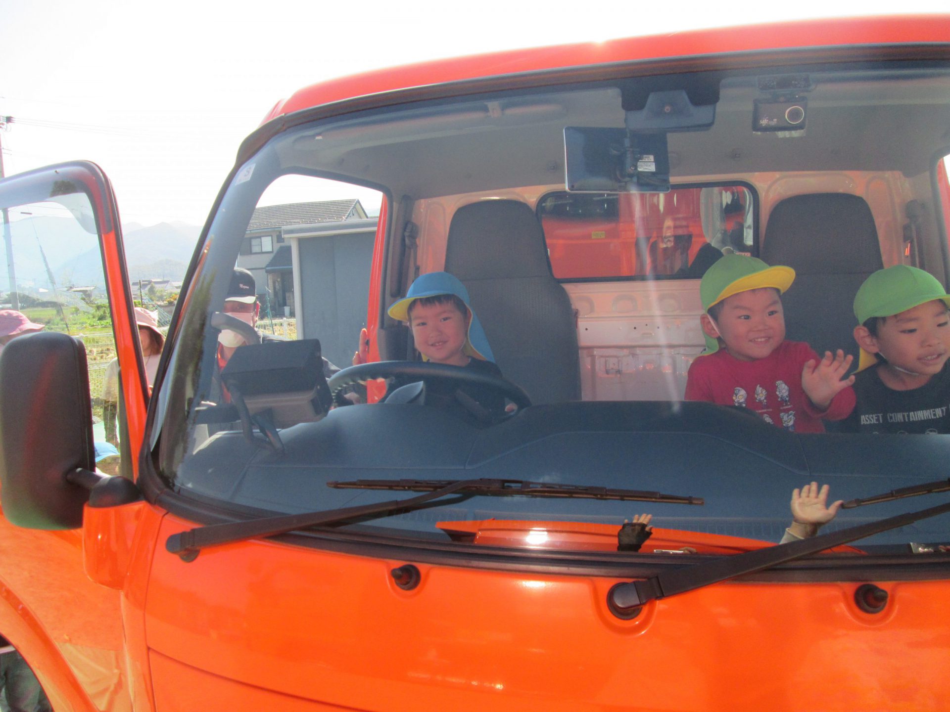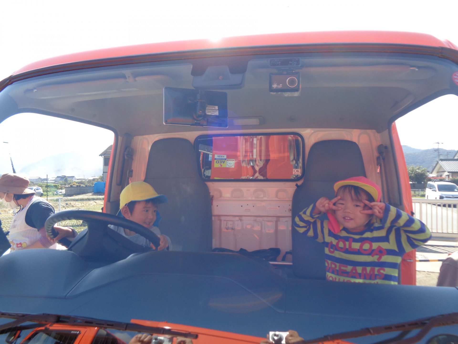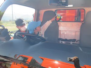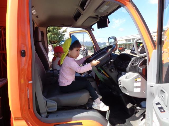 「キャー!」子ども達の歓声の大きいこと。だって、消防車や救急車、パトカーと同じくらい子ども達にとって、憧れの車なんですから。