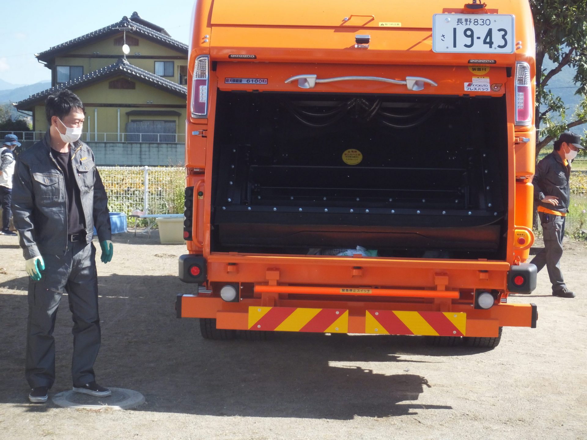 毎週火曜日と金曜日に、ごみ収集車がごみの回収に来てくれるのですが、こんなに間近に見るのは初めてです。
