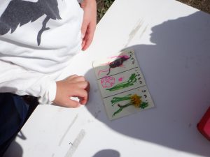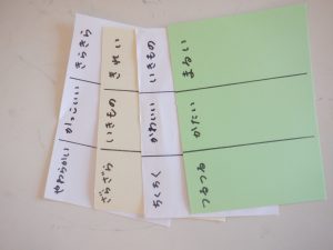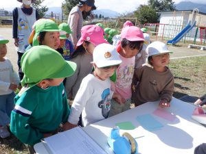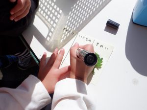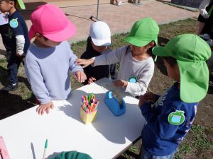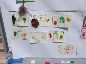 カードに貼れないものは年長さんが文字や絵でかきます。