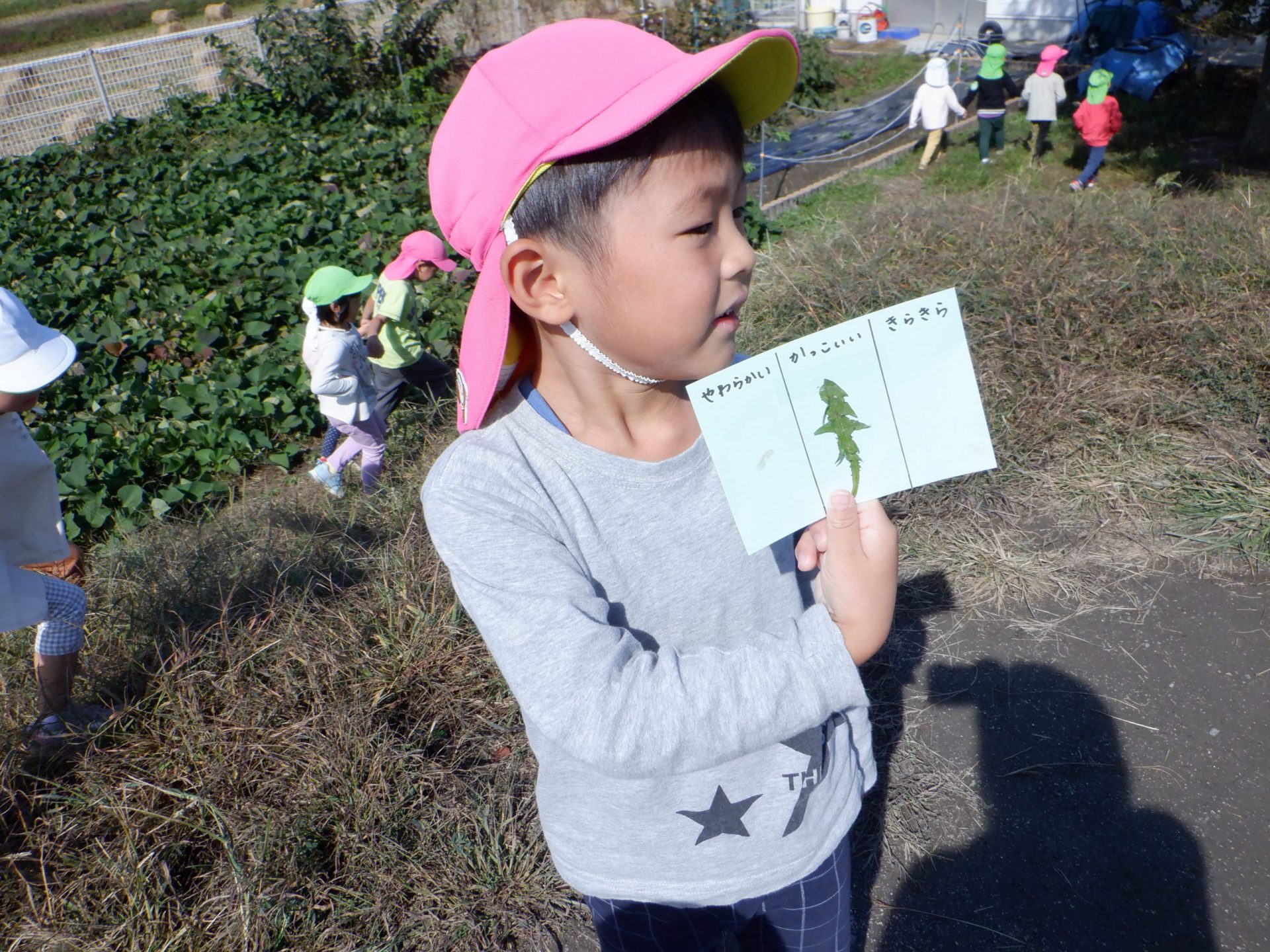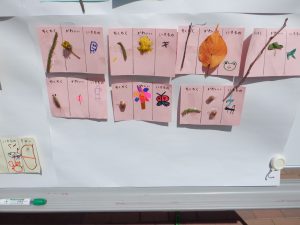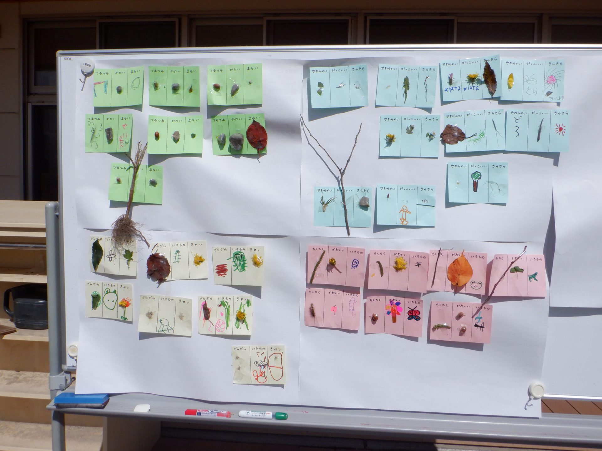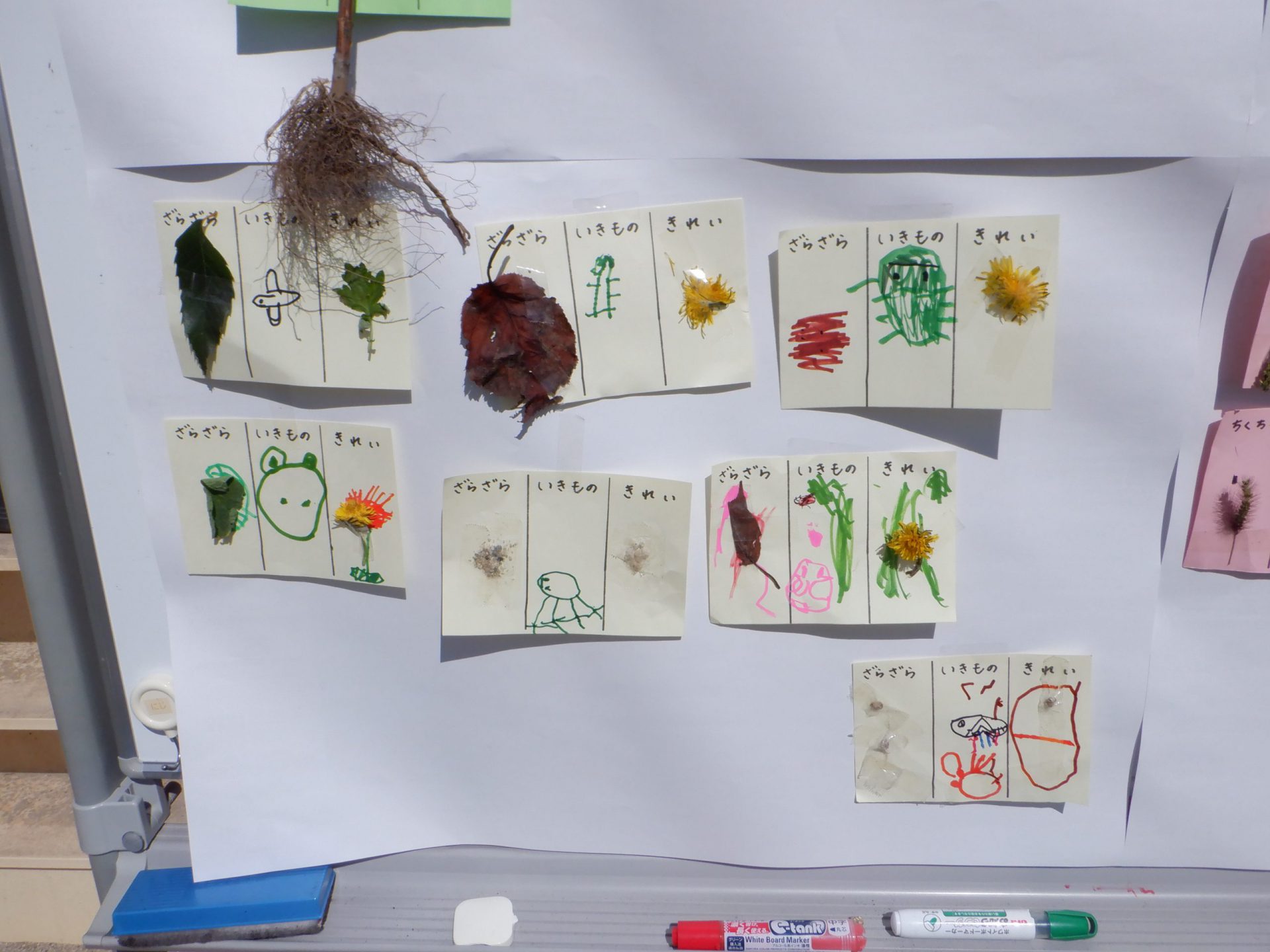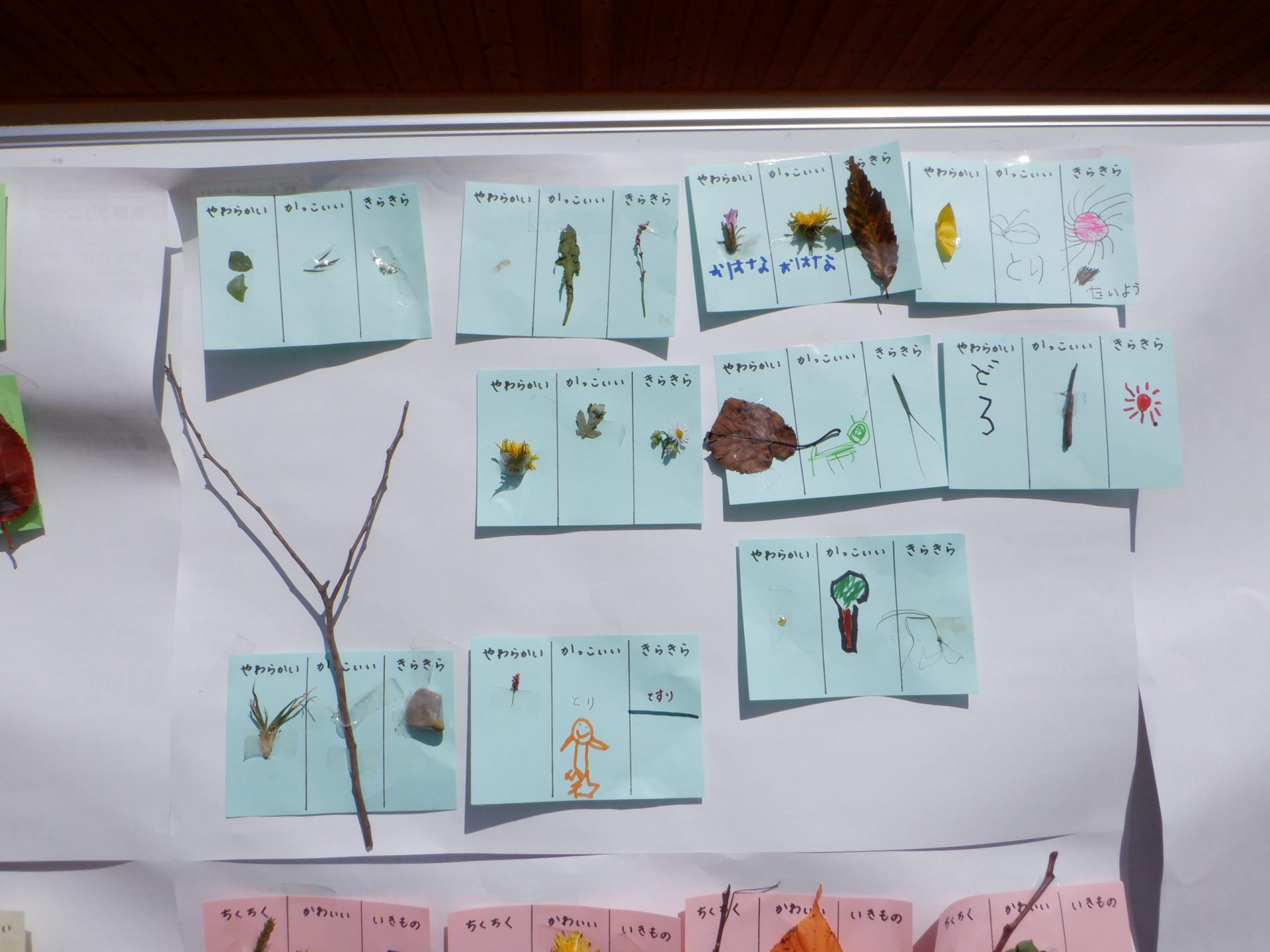 日頃園にある自然物に、どこか当たり前になっていた子どもも大人も、こうした活動をすることによって、あらためてじっくり目を向けてみることができました。