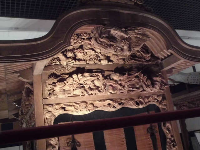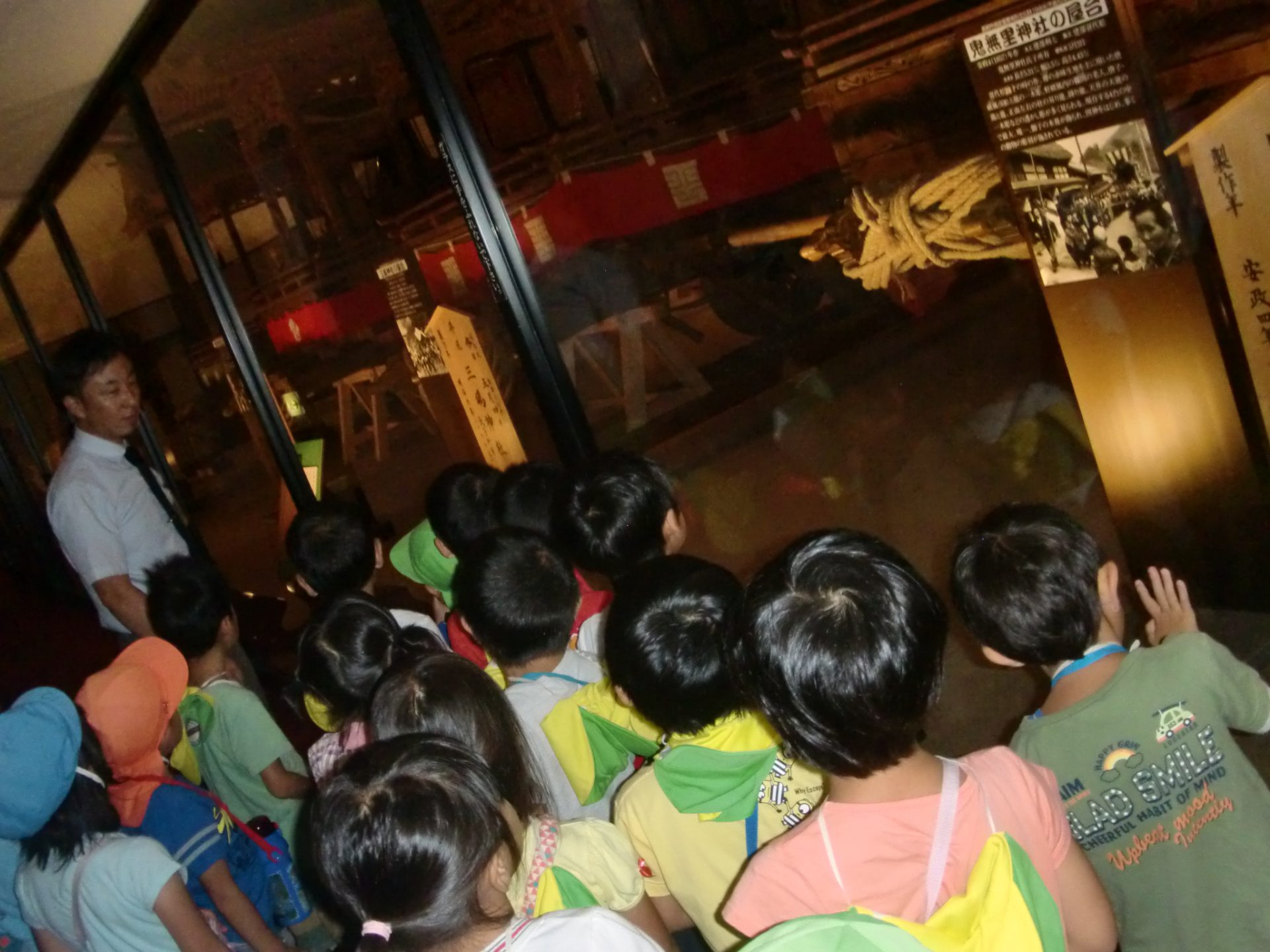 資料館内にある、現在も年に一度5月のお祭りに出る山車のお話などを聞きました。