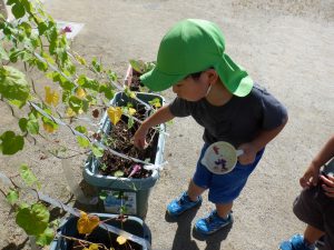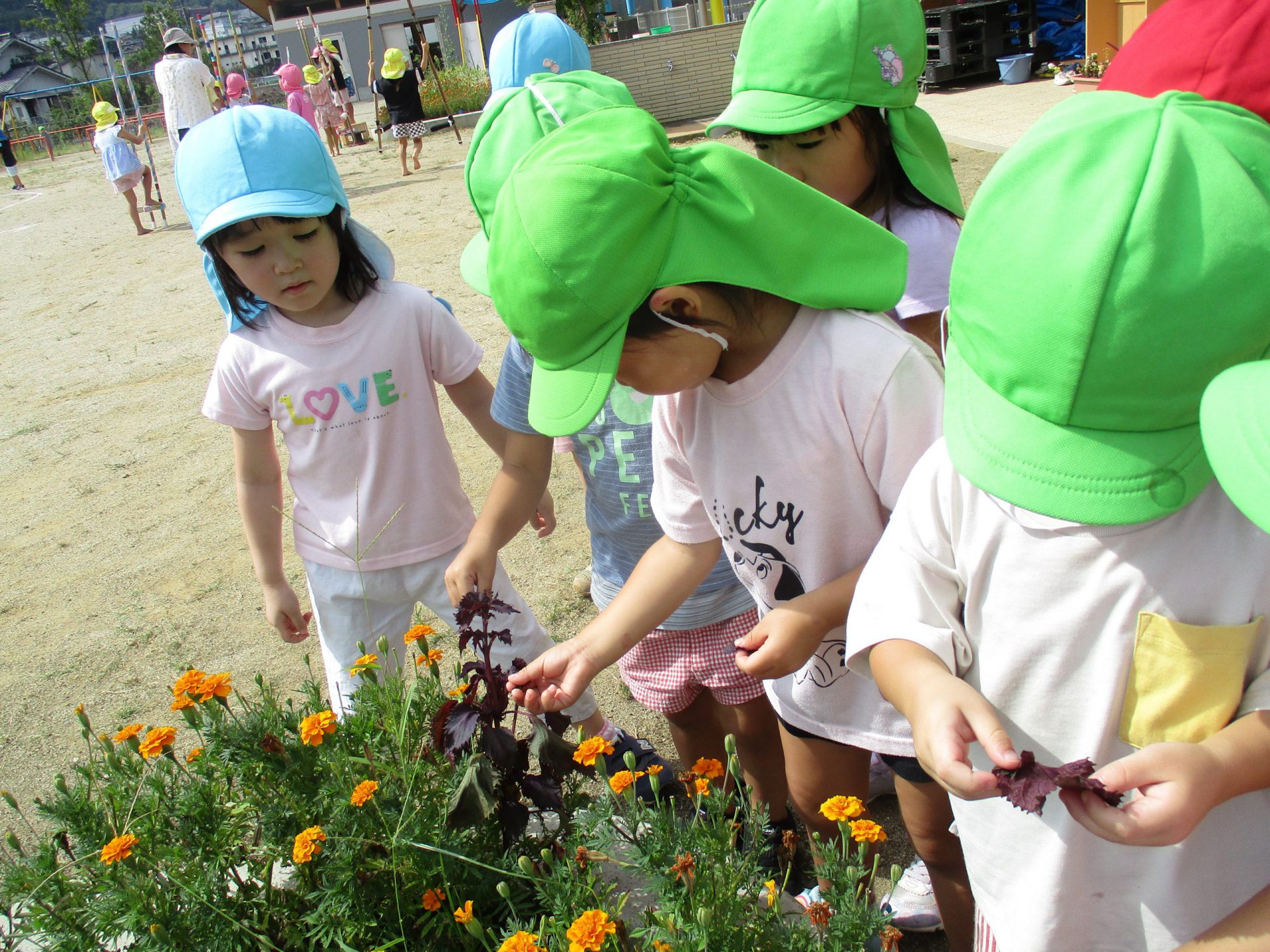 また、年中児が育てている赤じそやマリーゴールドを