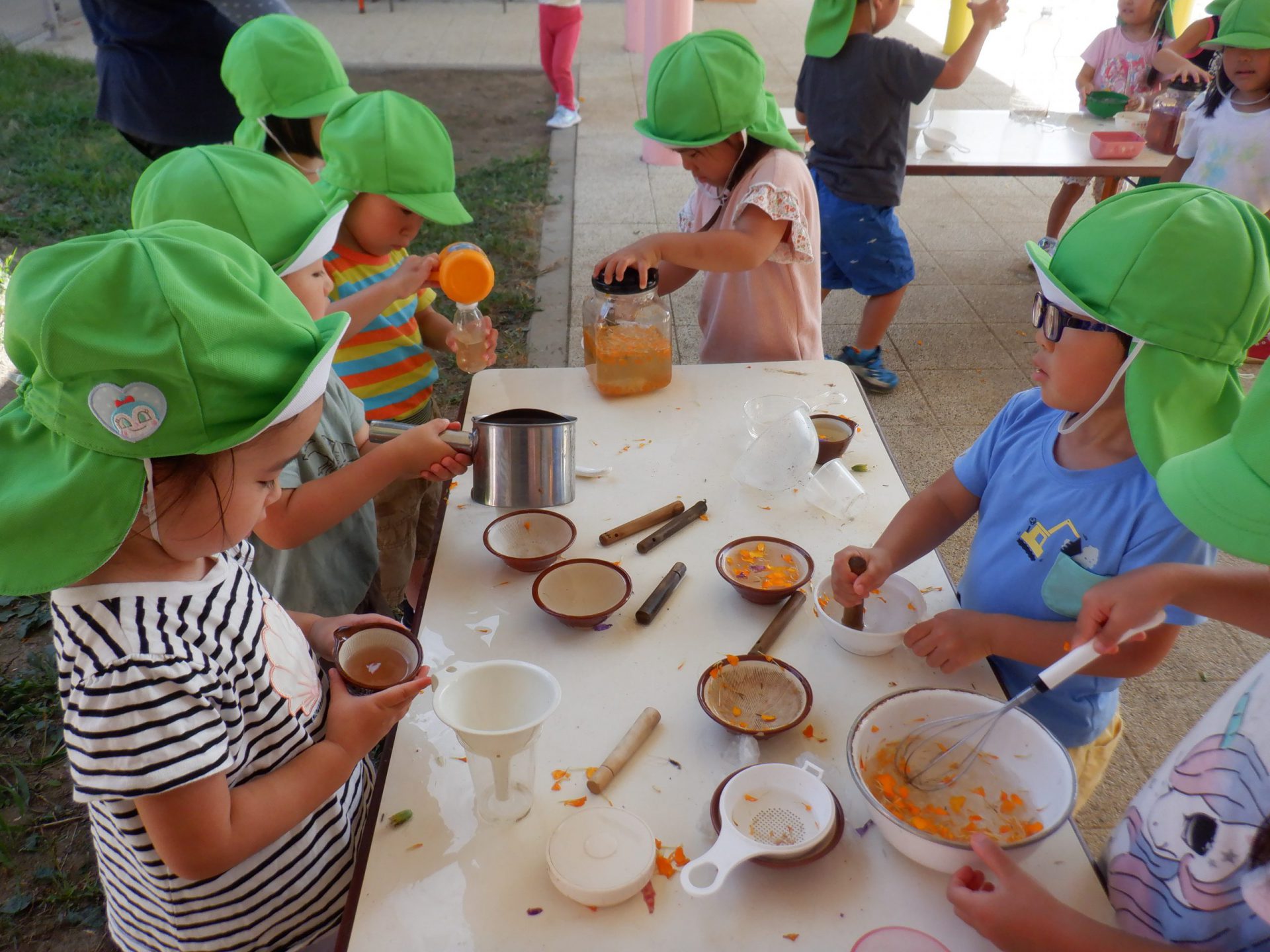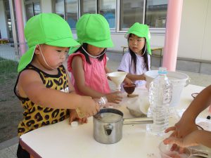 春からずっと継続して色水遊びを楽しんでいる子どもたち。