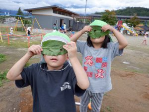 また、たった1枚の葉っぱから子ども自身でいろいろな物に見立て、遊びを楽しむ姿がありました。