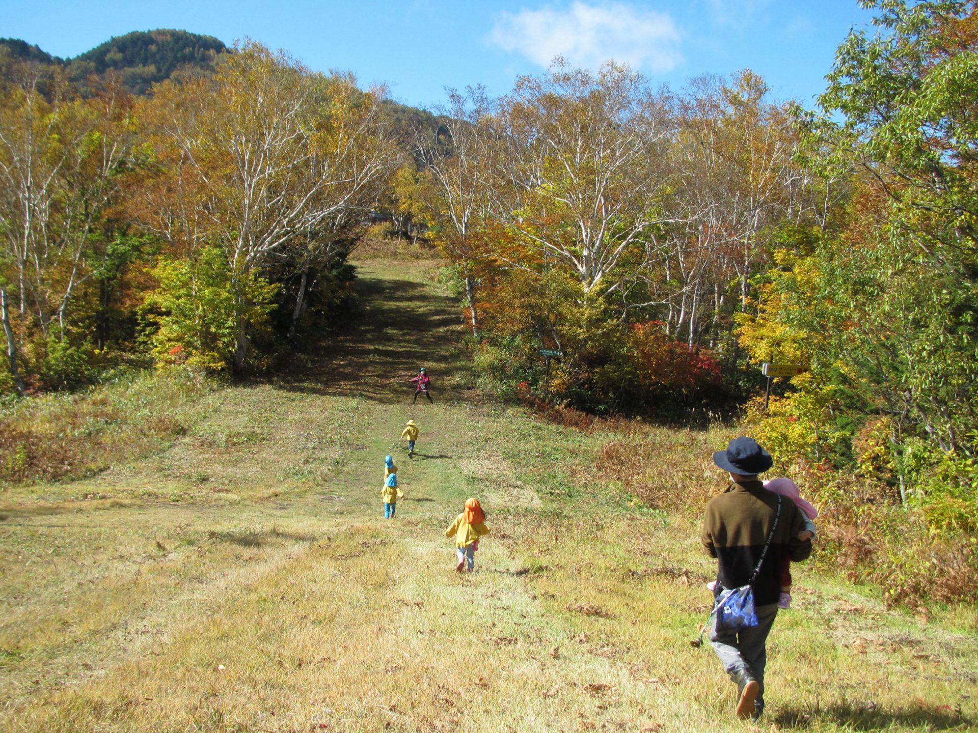 保育園からすぐのところにゲレンデが広がり、ずーっと奥まで紅葉の山々が続きます。