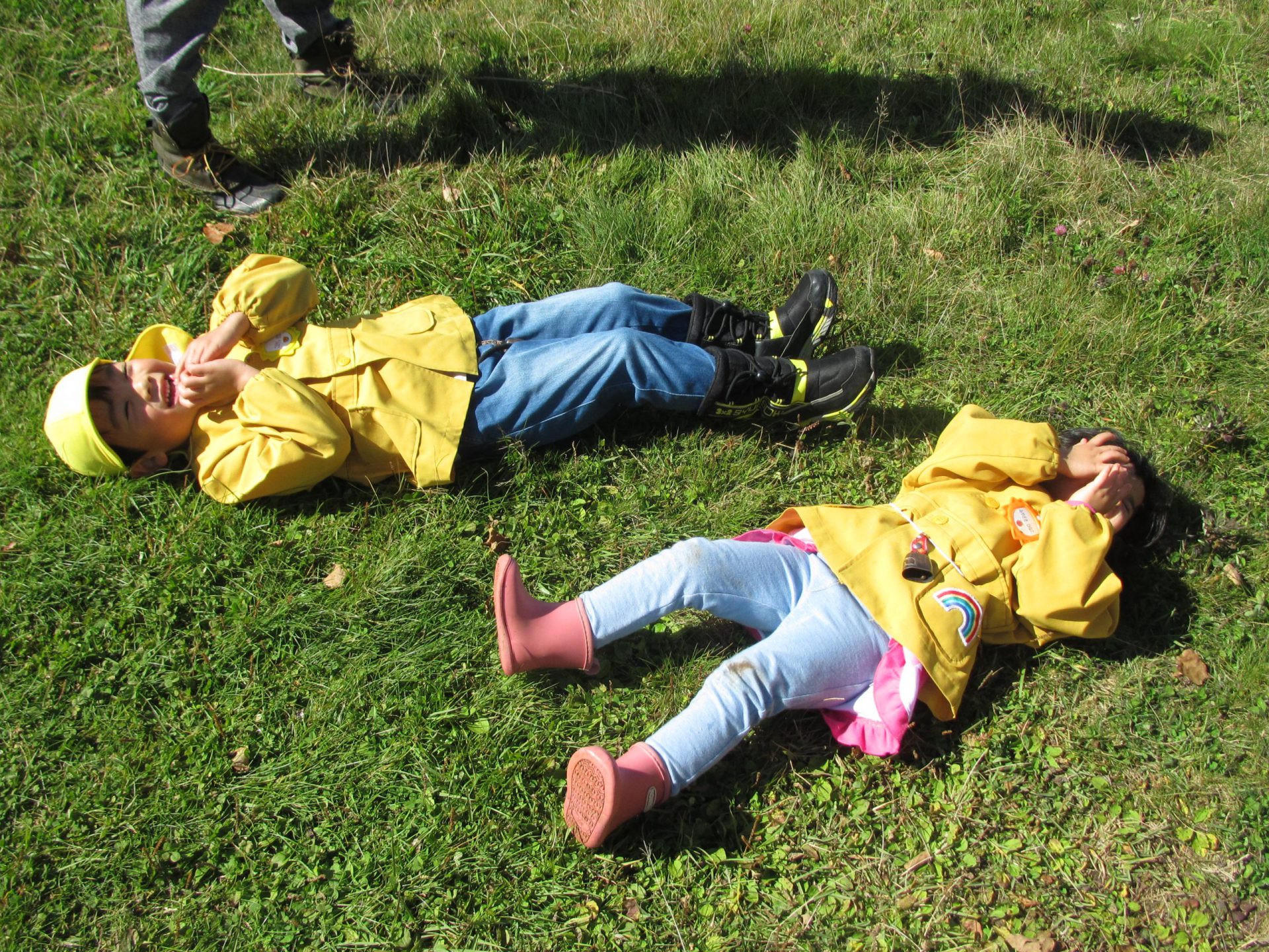 ゲレンデを下ったら何だかホットしたようで、草にごろごろ。