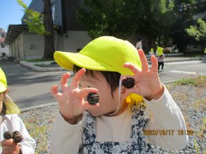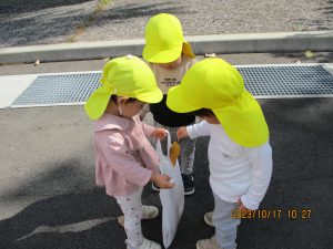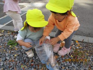 虫探しをしている横では、自然物を拾っている子がいました。