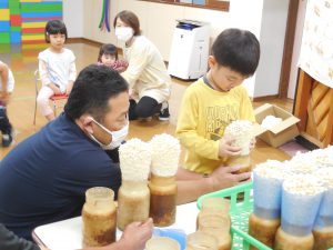 身近な野菜、エノキタケがどんなふうに栽培され、収穫するのか体験を通してよくわかったようです。