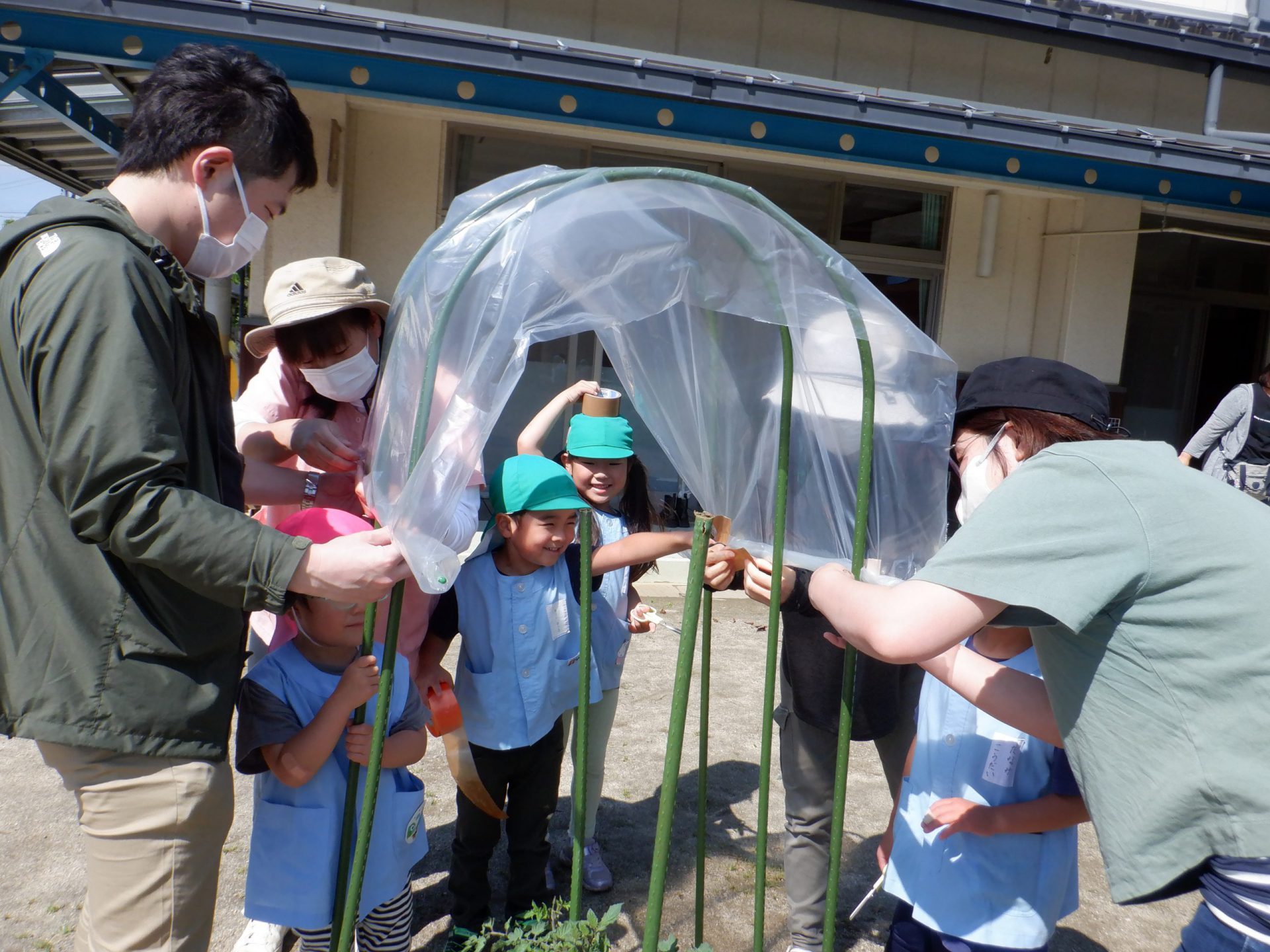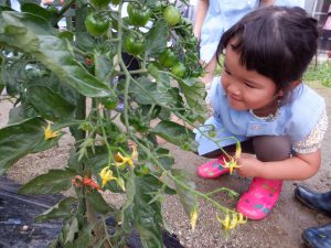 年長さんを中心に話を進め年少、年中さんにどんな手助けが必要かをみんなで考えていくことができます。こんな経験ができると思うと一気にたくさんの収穫ではなく、1個(3個)の収穫もいいものだなと感じました。