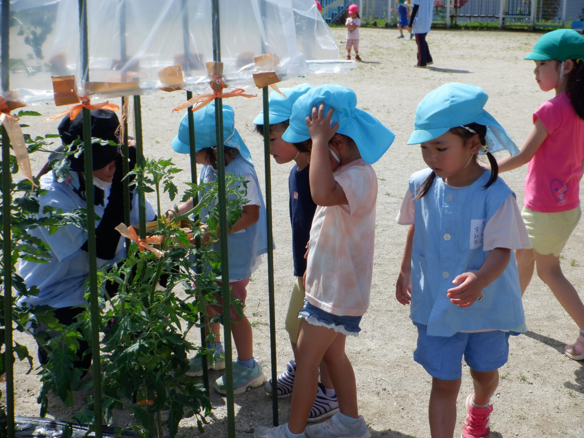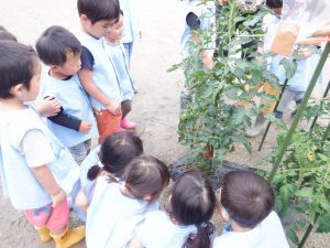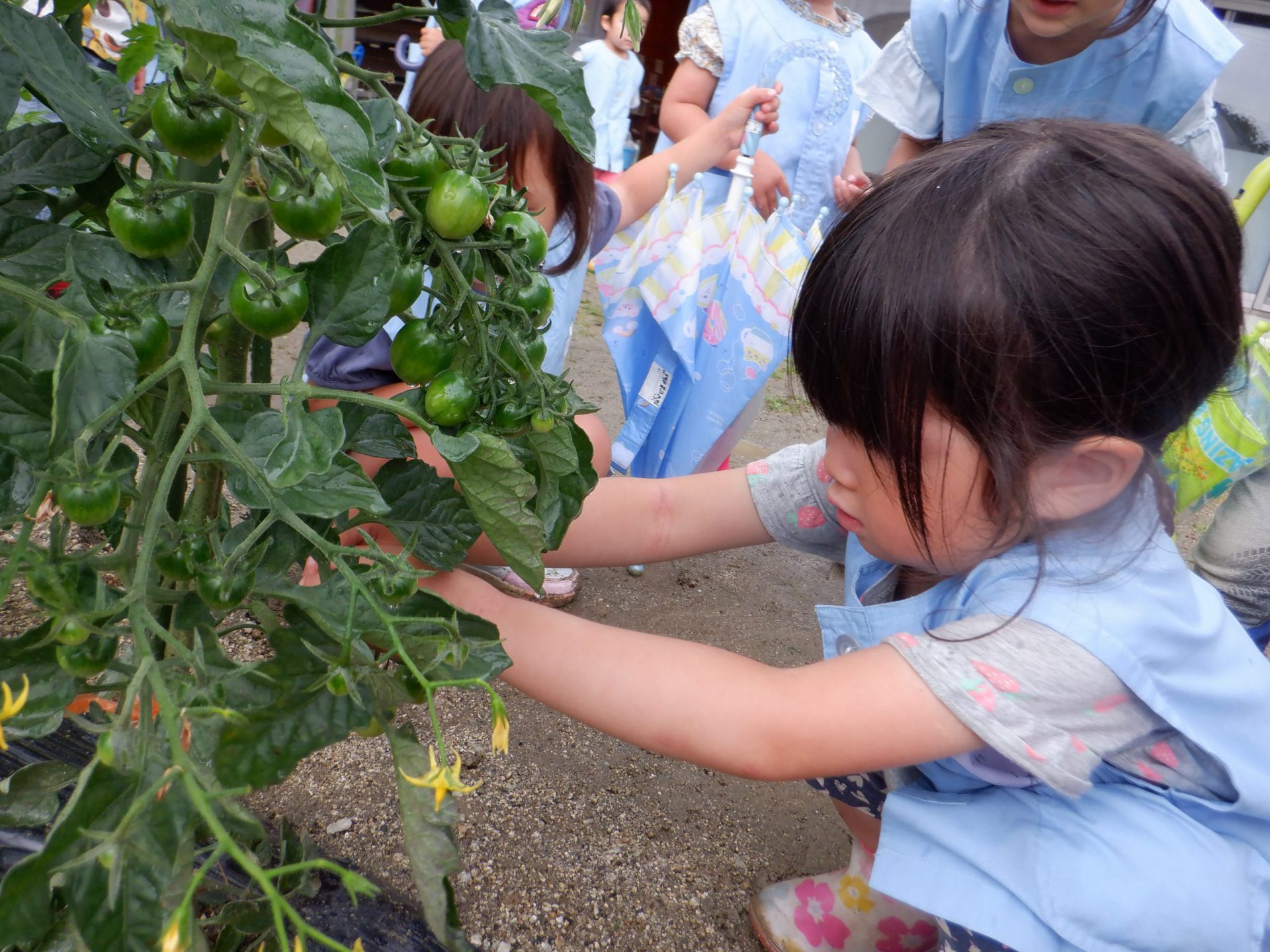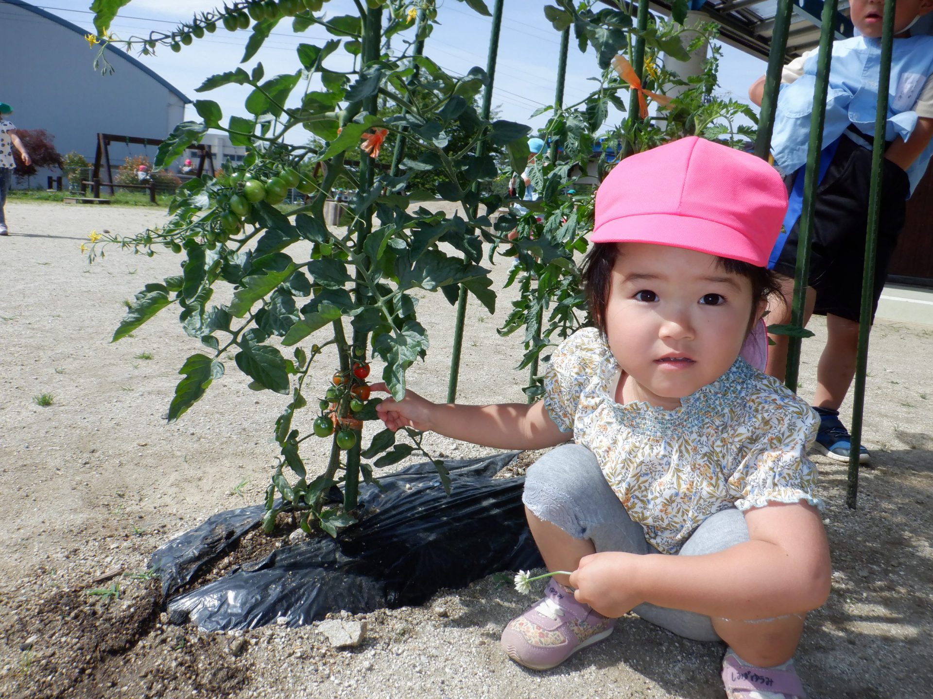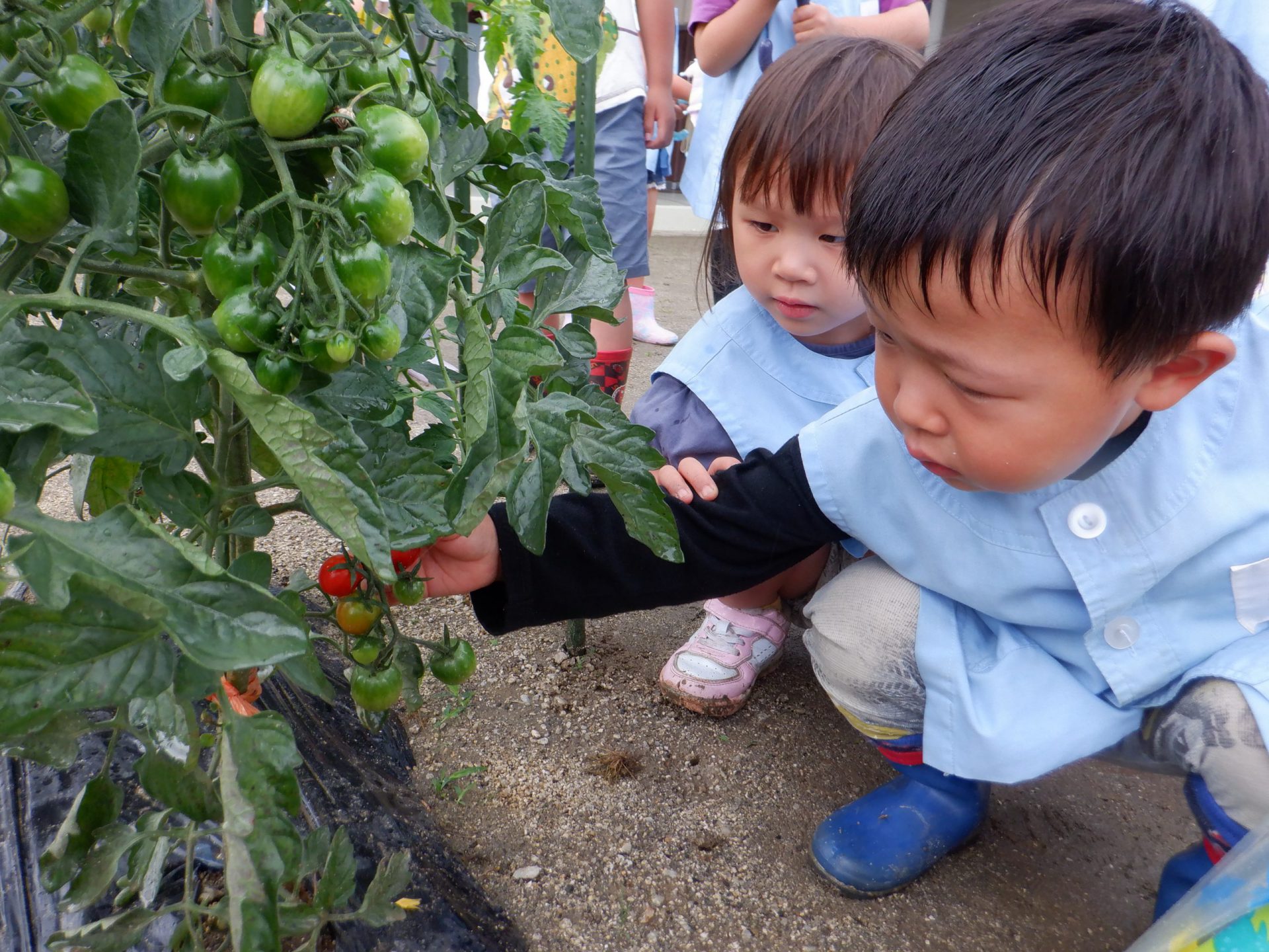 もう一回くじ引きをして、新たにふたりの年少さんがトマトの収穫をすることができました。