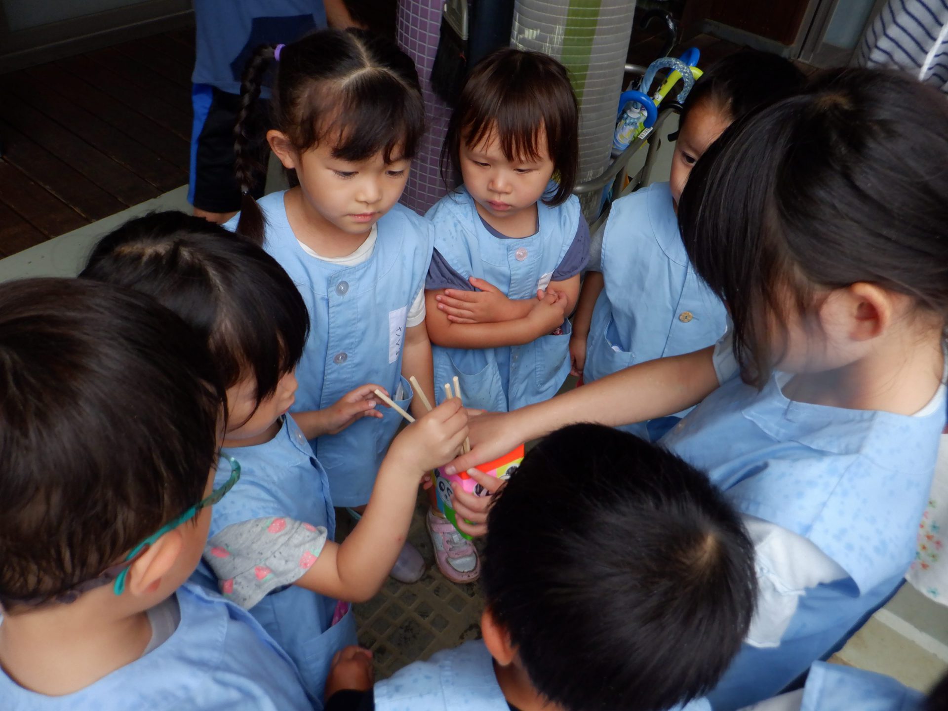 「私が取る!」「僕も取りたい・・・」と年少さんが言い出しました。