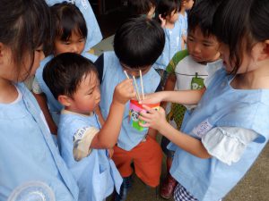 だからこそ、代表になった年少さんのお家の人も、簡単にとってはいけない。がっかりさせてはいけない。潰さずに落とさずに丁寧に取れるようにしないと!・・・と練習までしてくれたと思います。子どもたちの思いをおうちの人も受け止めてくれたことに驚きと感謝の気持でした。