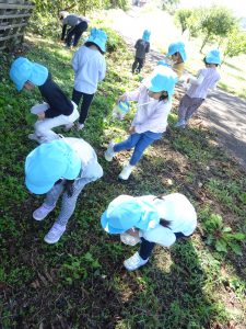 秋の季節がやってきました。天気のいい日は散歩に出掛け、木の実探しに夢中な子ども達。