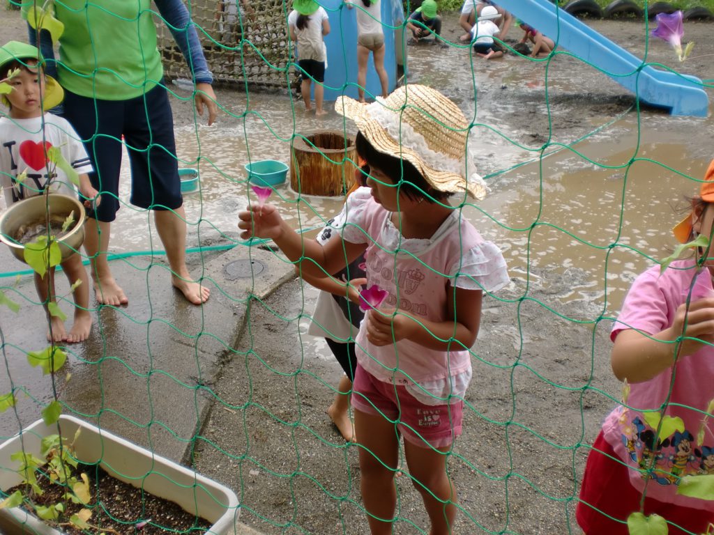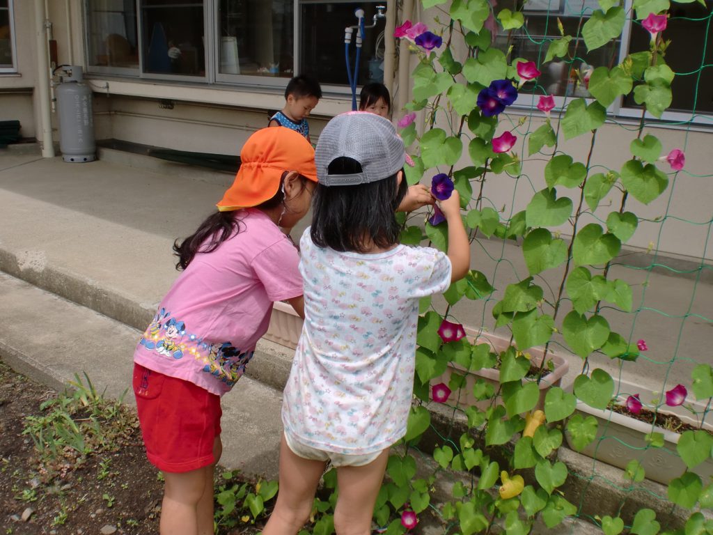 今までも色水作りは遊んだことがありましたが、あさがおを育てるところからやったのは初めてのことでした。