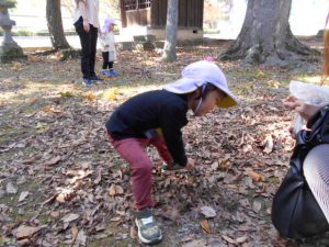 なかなかどんぐりが見つからなかったお友達。「ないなぁないなぁ」と一生懸命探します。