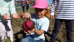 10月中旬、育てていたさつまいもを収穫した子どもたち。昨年の経験から