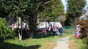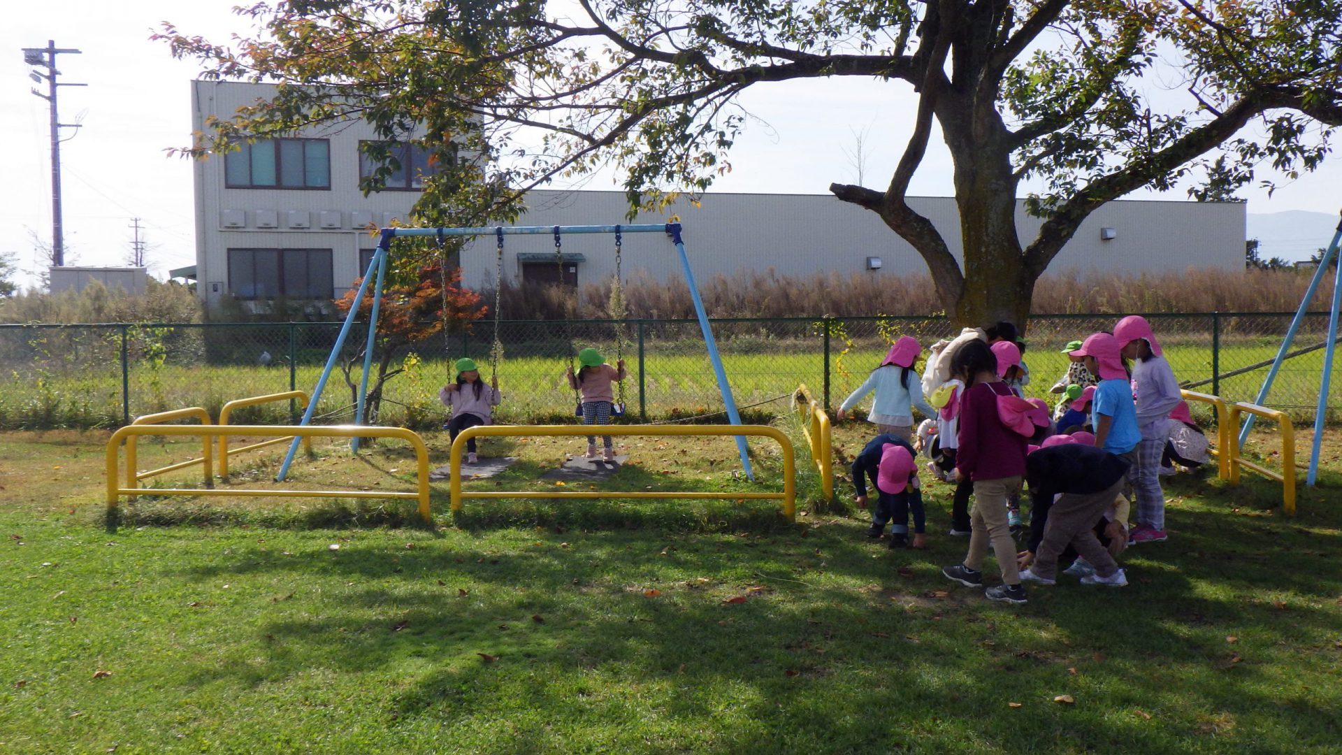 「やきいも焼くなら、落ち葉を集めないと!」ということで、今日はみんなで落ち葉集め。