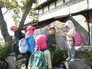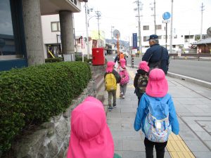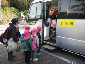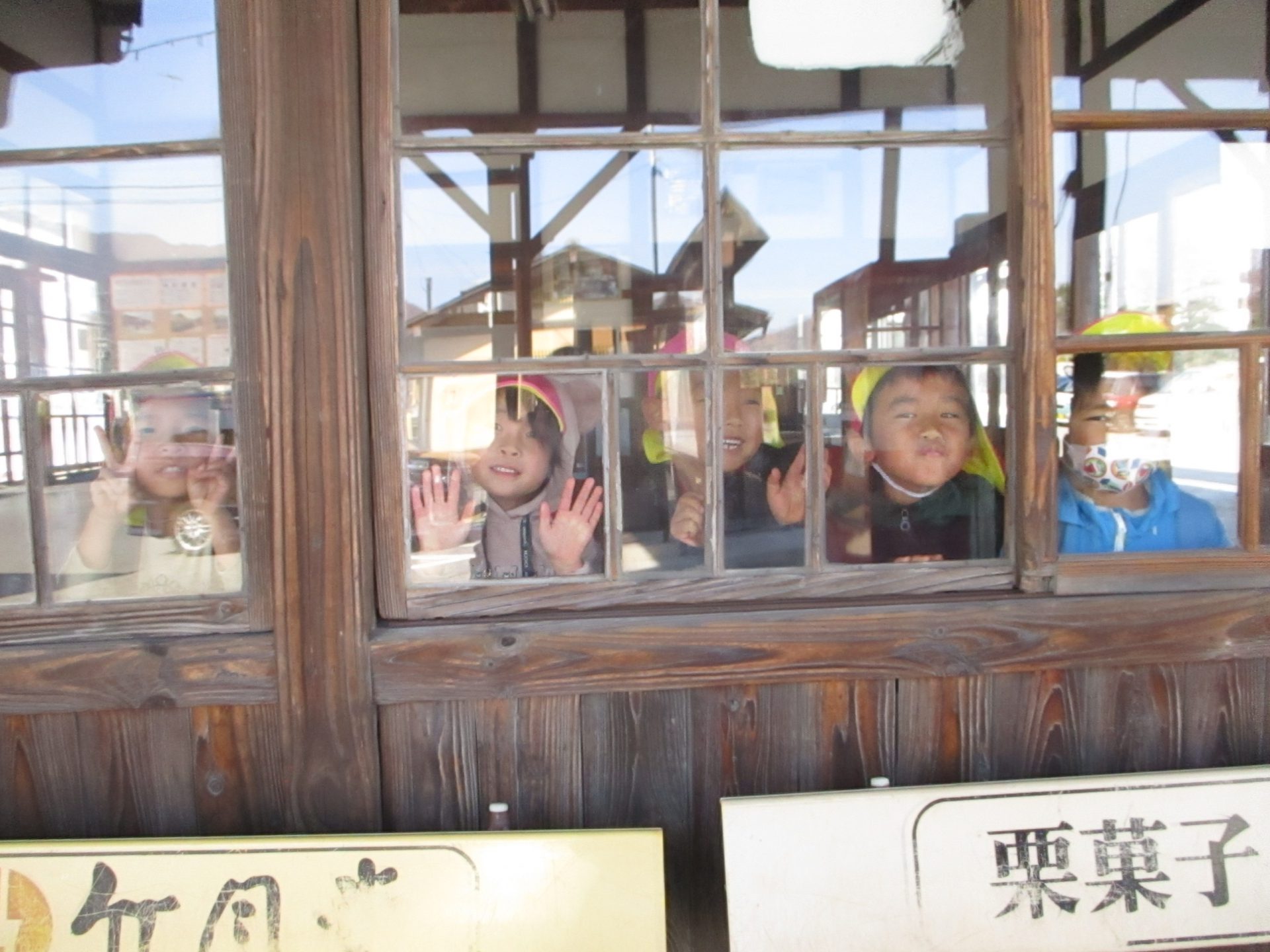 終点で降りてから、「車が沢山だね」「ここは郵便局」「あそこは〇〇園長先生がいるところ」(前の園長先生の職場でした)