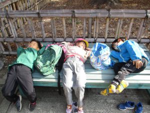 お腹も満たされたみんなは、バスが来るまでしばらく待ちます!
