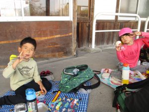 ここは、松代駅の駅舎!駅のホームで「いただきます👐」