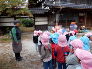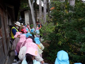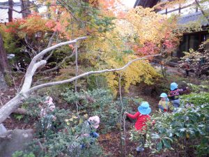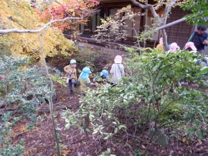 園近くのお宅のご厚意で、お庭の杉っ葉や落ち葉を拾いに年長さんと一緒に行かせてもらいました。