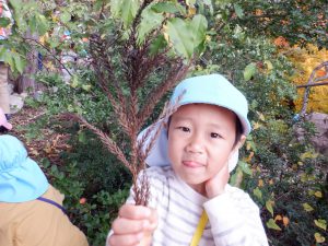 秋の自然に親しみ、たくさん拾えた達成感を味わったり、これから行うやきいもへの期待感を高めることができました。