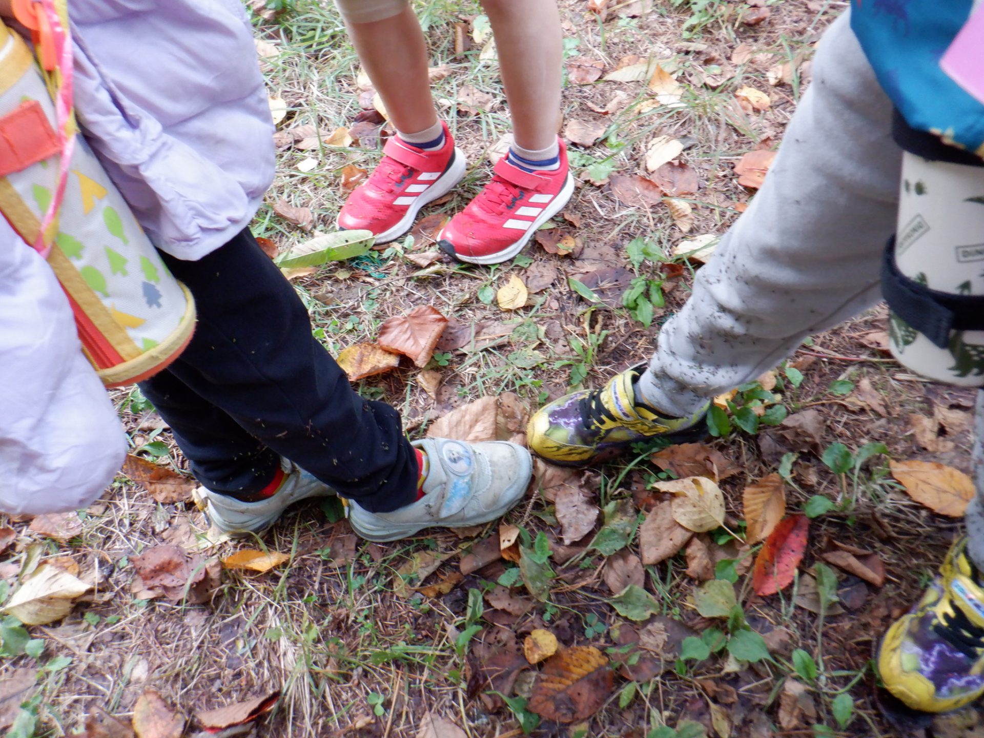 「(植えたときは)このくらい小さかったよね。」と、年長児。年中・年少児は初めて見に行きます